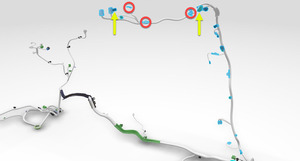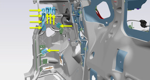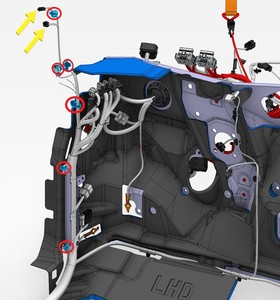 Note2x connector, Hold LH applique away from body to gain better access to the camera connectors, Secure locking tab
