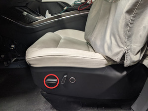 Position chair to gain access below seat bottom and disconnect LH side body harness from seat controller