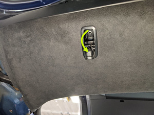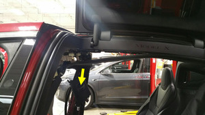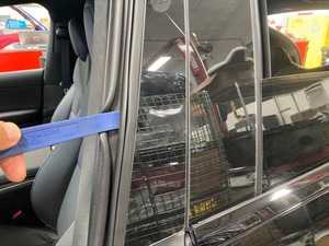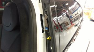Remove masking tape from the LH lower C-pillar and from the race tracks