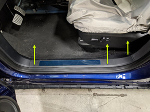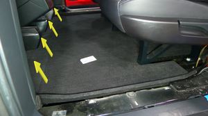 Note2x push clips, Position LH and RH sides of cabin carpet behind front sill trims