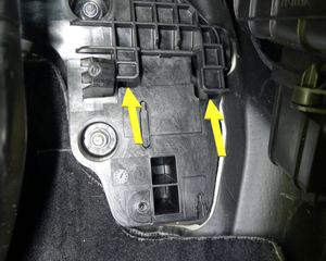 Note2x clips, Lift front of panel up to release clips, Lift rear of panel and slide out from behind seats