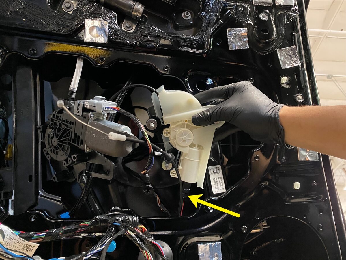 Note2x tabs, Pull LH closeout panel away from door and lift window motor up to release