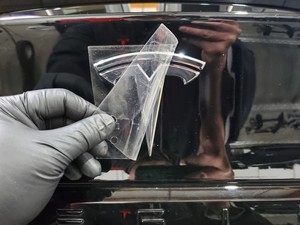 NoteStarting from the bottom and working upwards, use a seam roller to apply pressure and allow the badge to fully adhere to the trunk, and then remove the film.TIpUse of the following tool(s) is recommended: