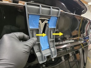 NoteThe badge alignment tool will line up with the rear applique. Use masking tape to secure the front of the badge to the badge alignment tool.TIpUse of the following tool(s) is recommended: