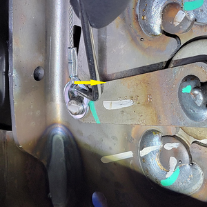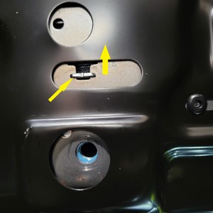 Bend the locking tab on the LH 3rd row seat recliner cable inner eyelet outwards, and