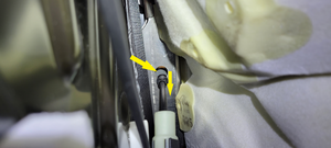 Cut the zip tie that attaches the LH 3rd row seat recliner actuator cable to the seat