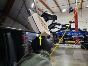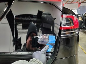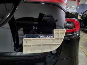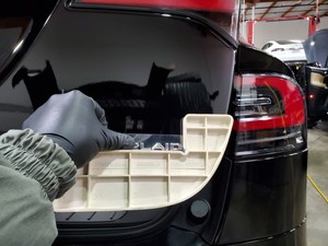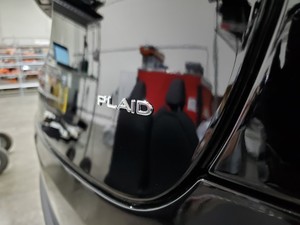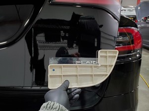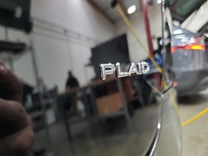 Install the new plaid letter badge on the liftgate.