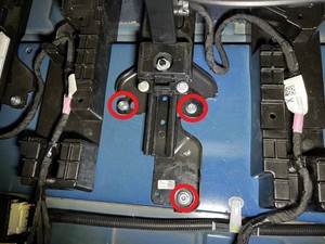 (x6) that attach the LH 2nd row seat front bracket to the vehicle.
