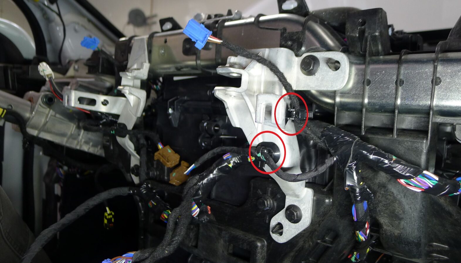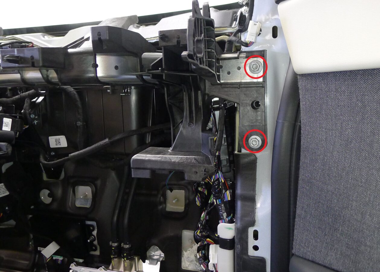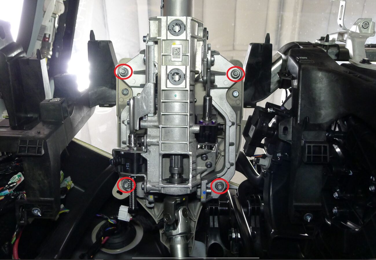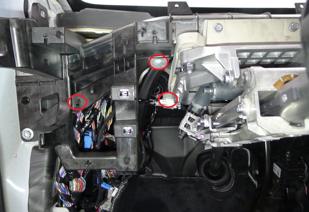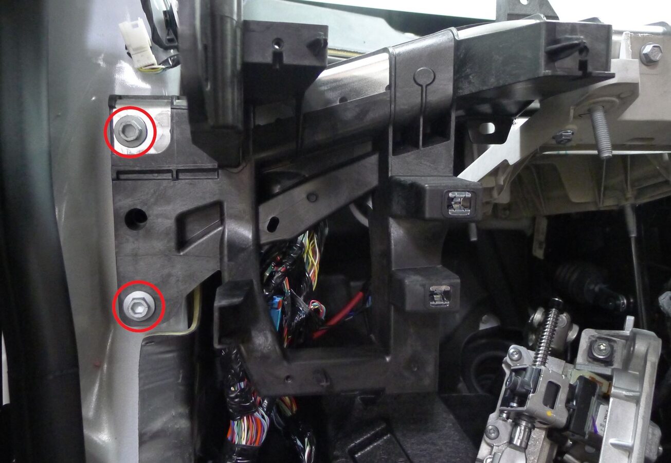 Release upper steering column bracket IP carrier bolts at bulkhead