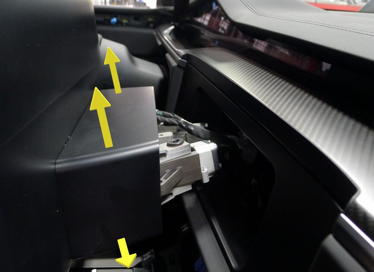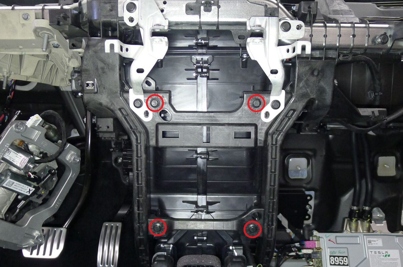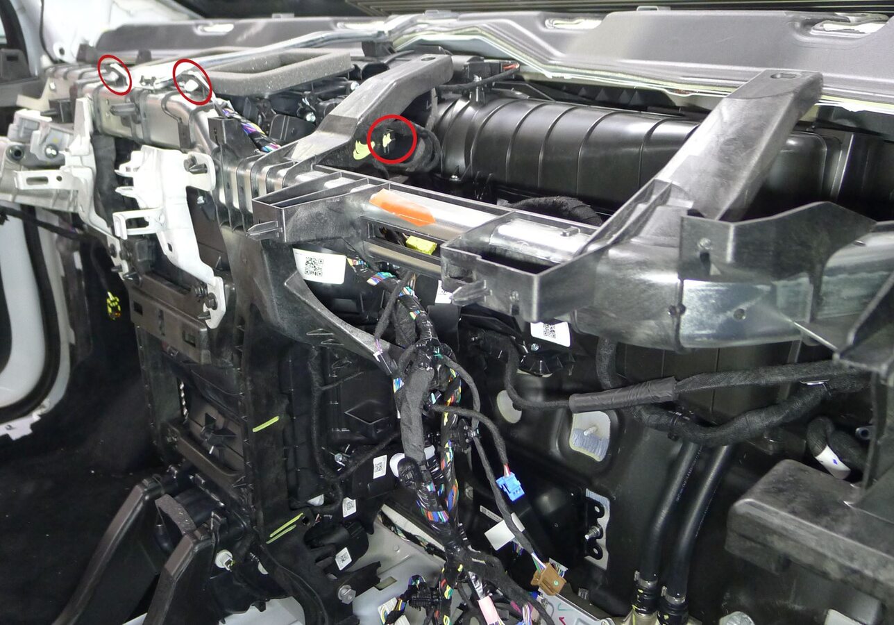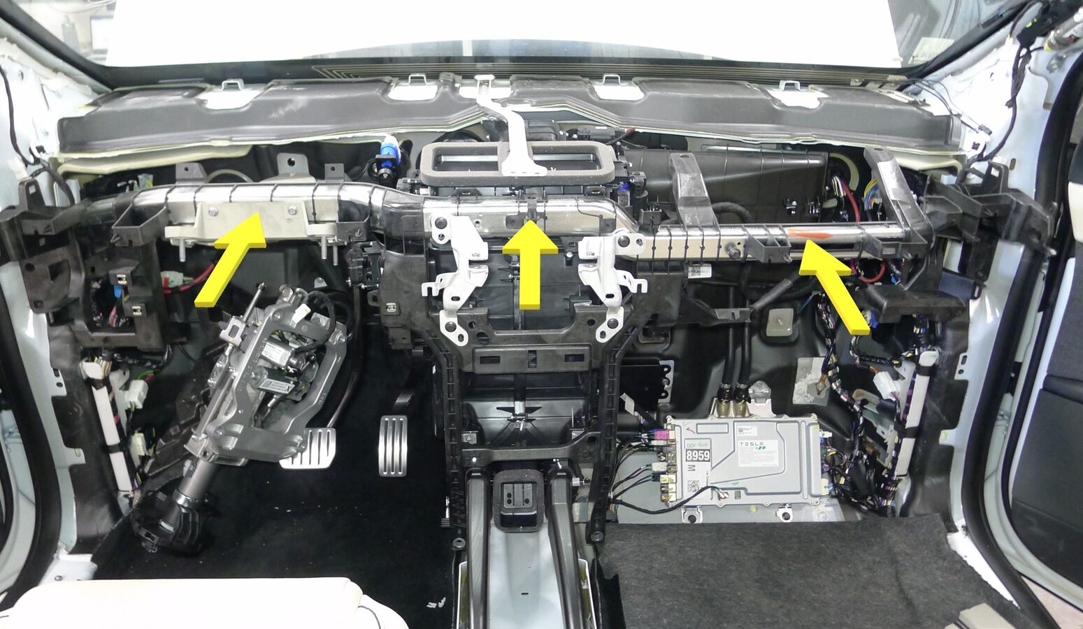 Release upper steering column bracket IP carrier bolts at bulkhead