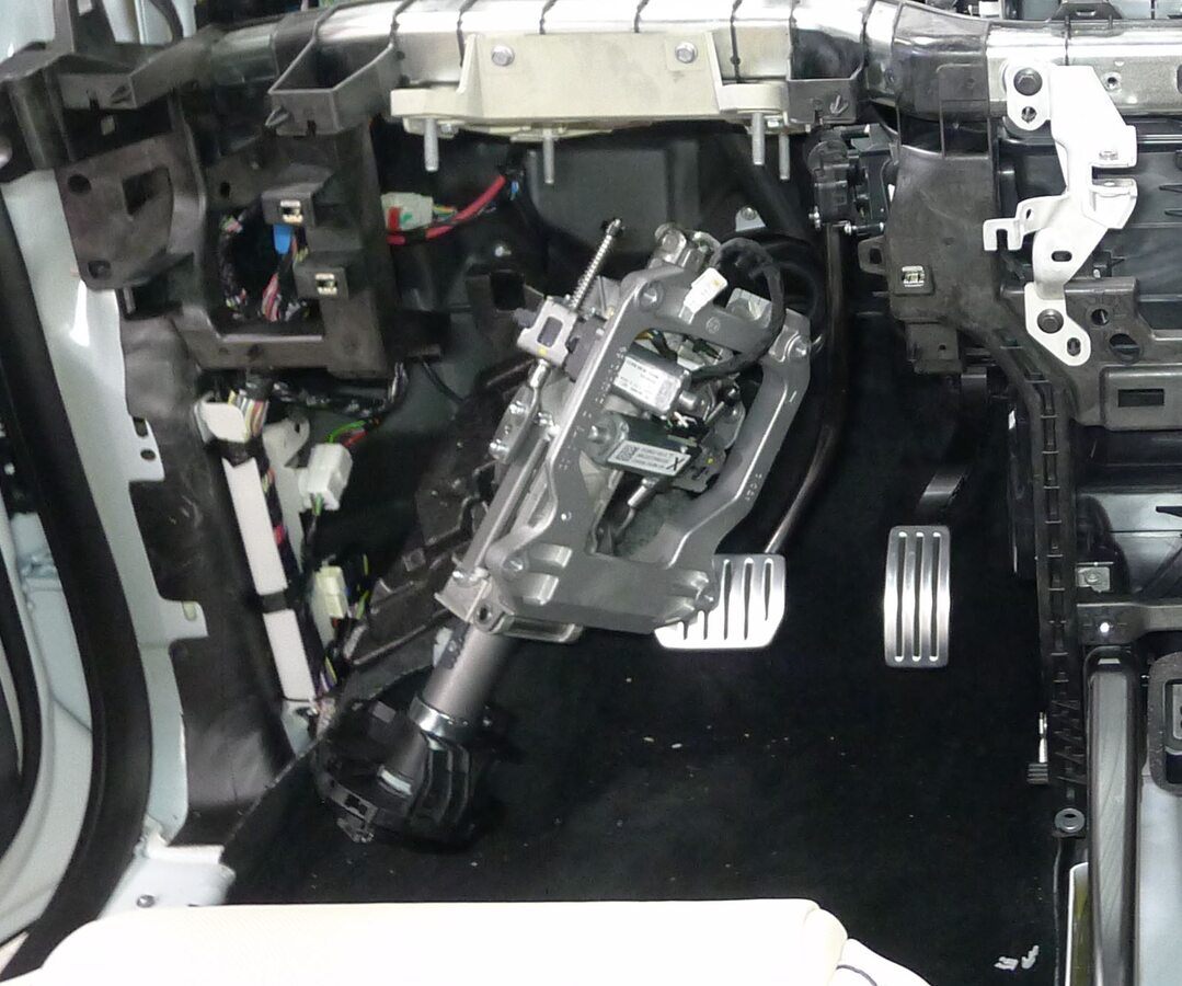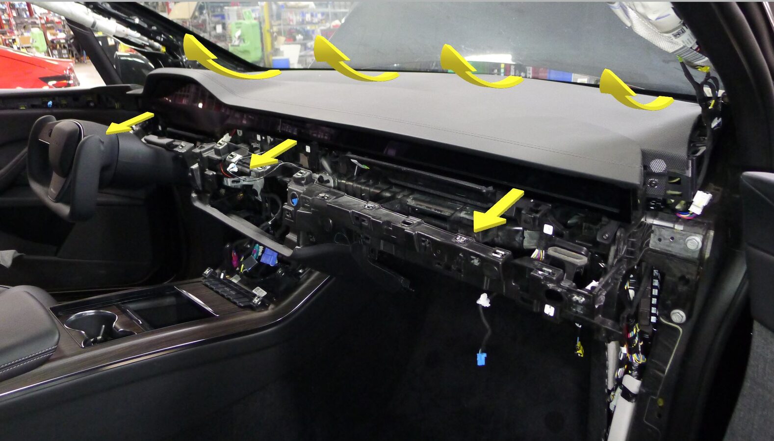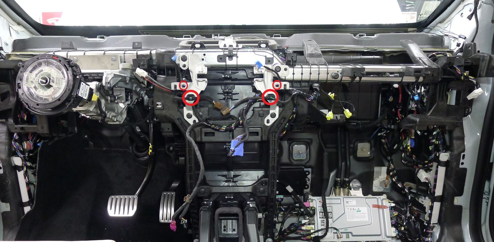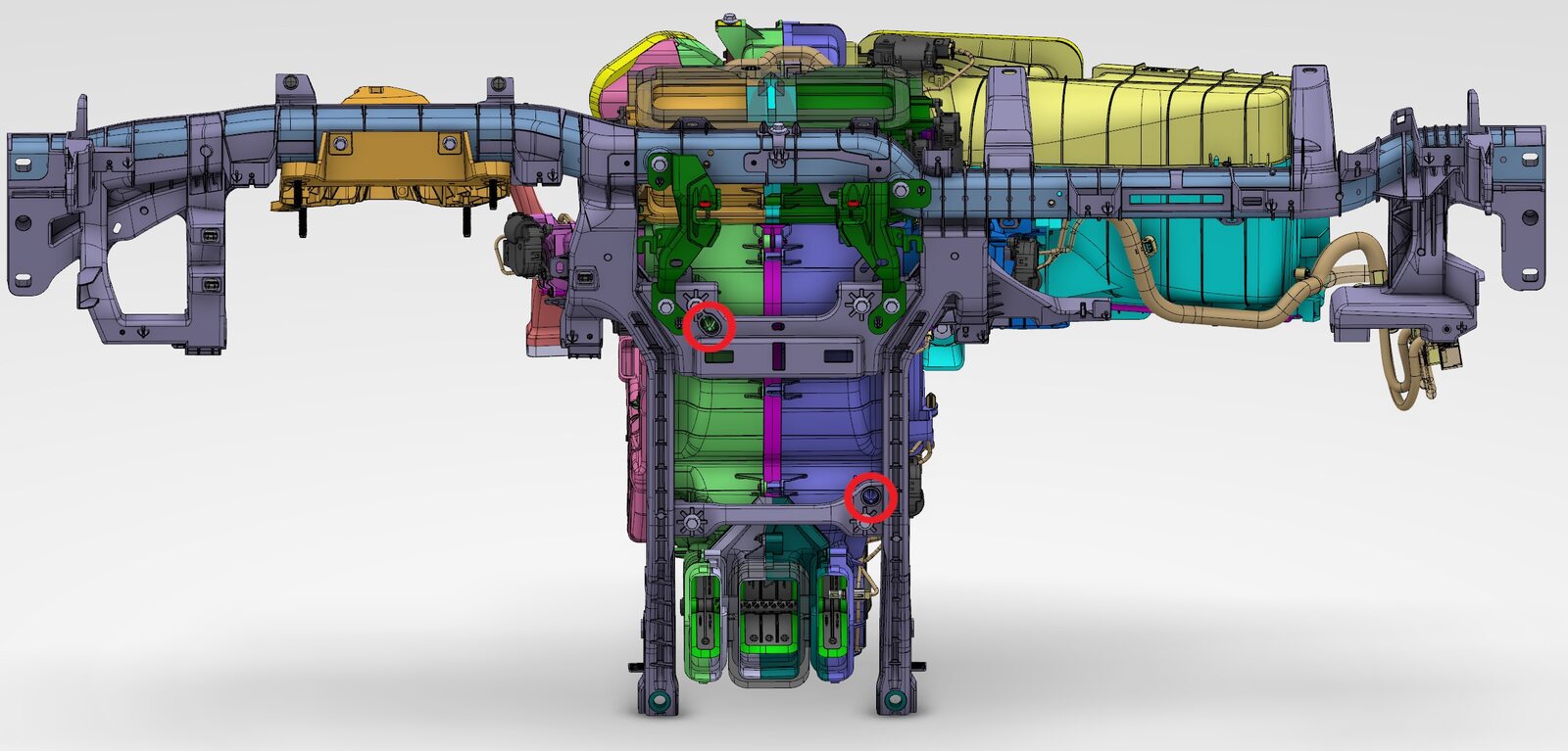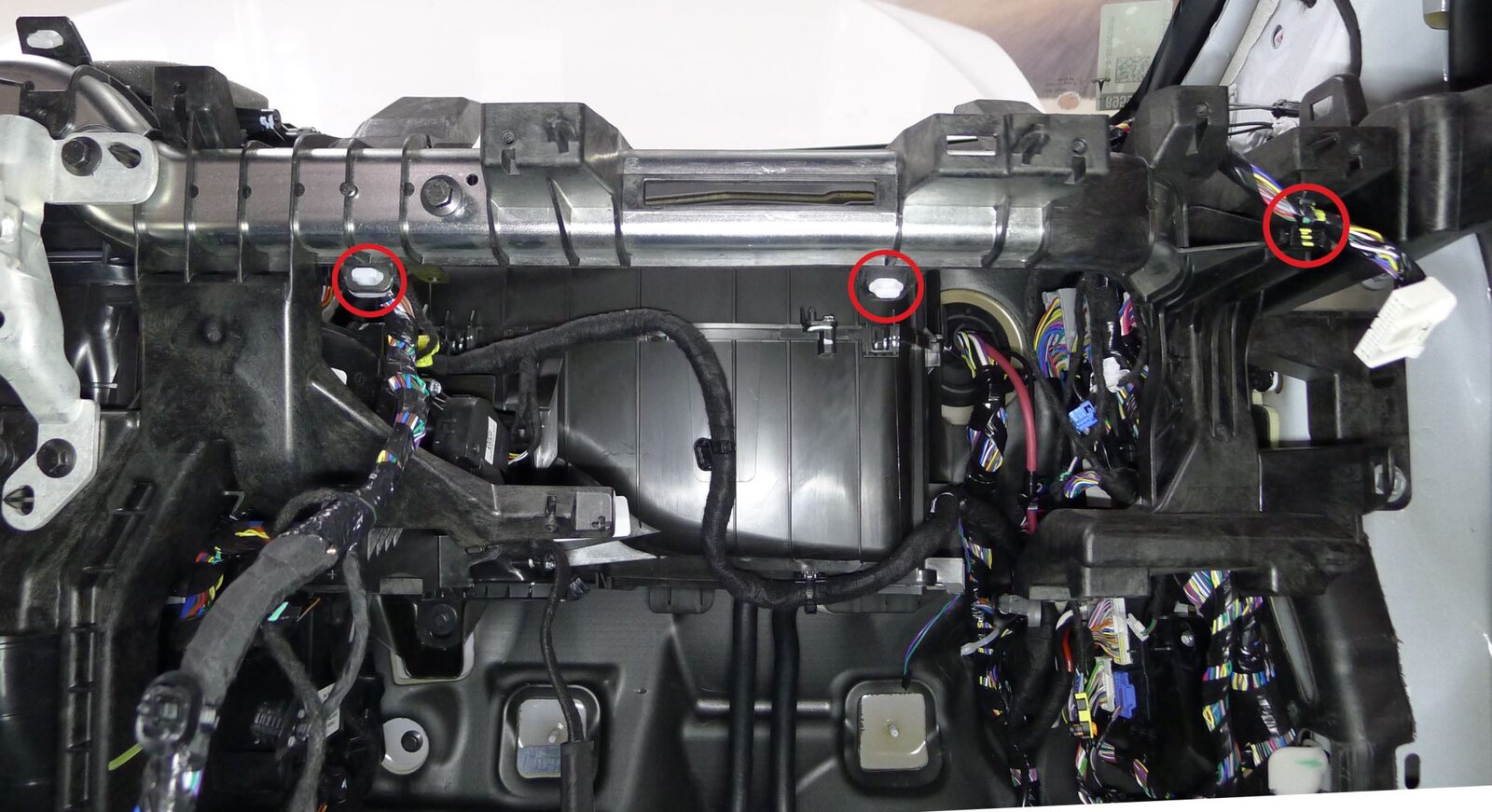 Release upper steering column bracket IP carrier bolts at bulkhead