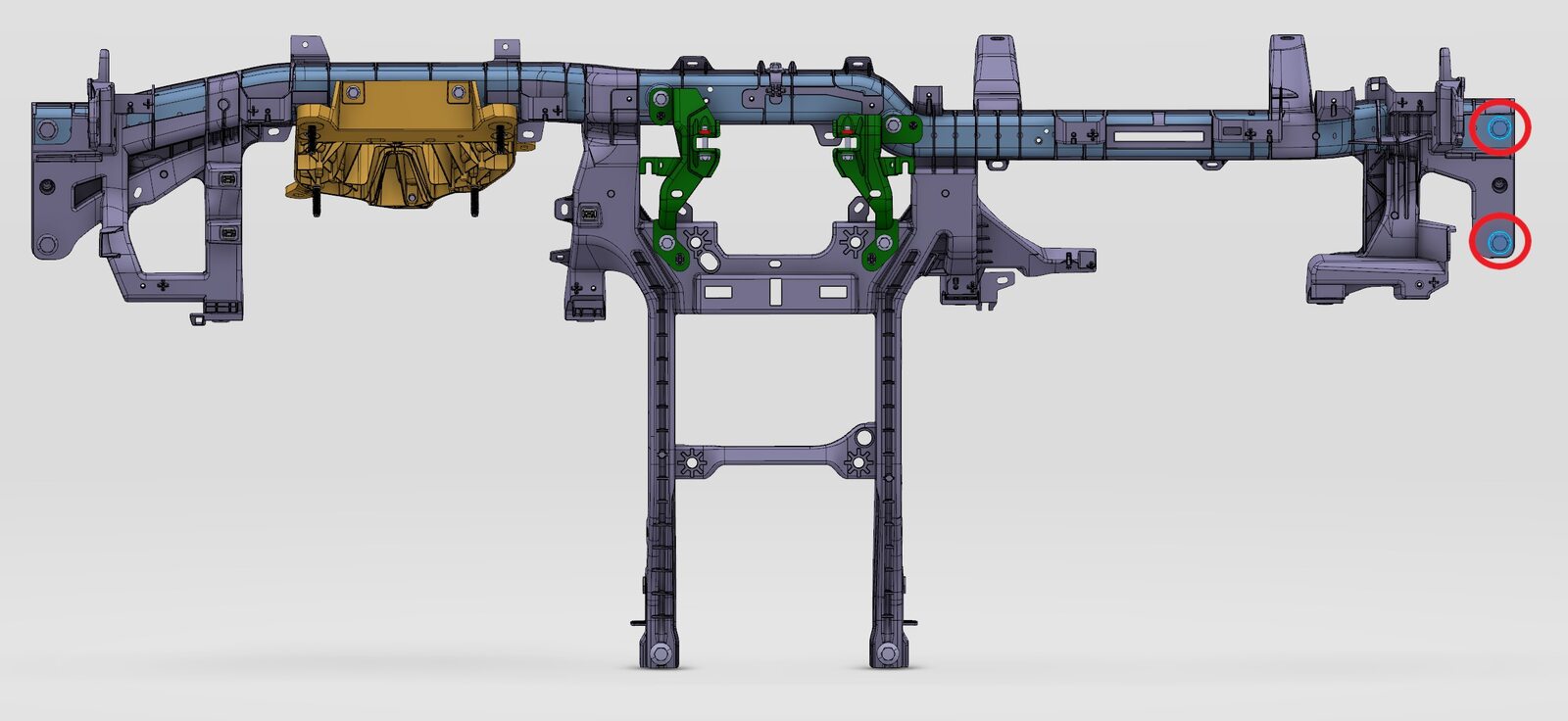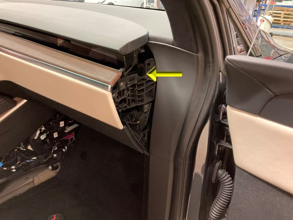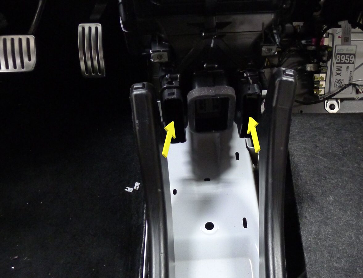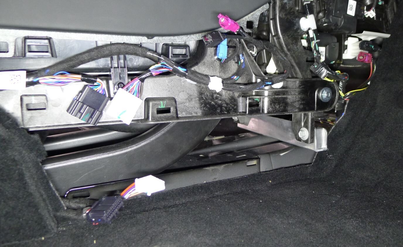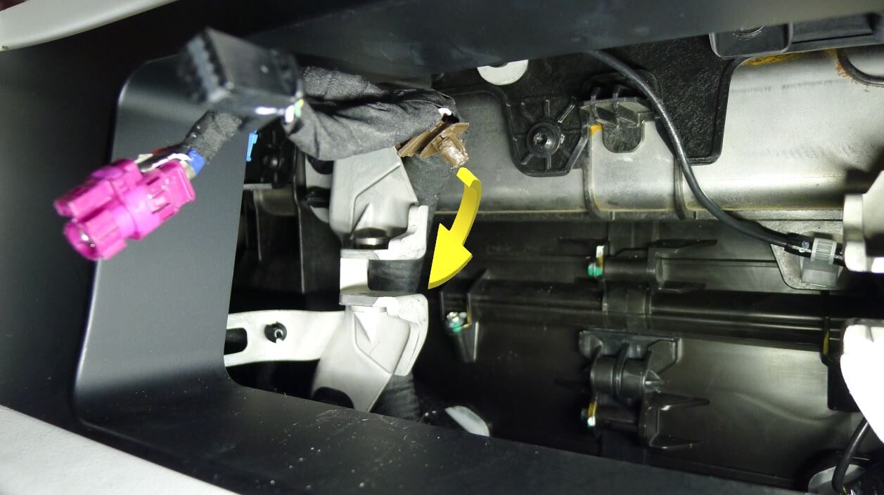 Release upper steering column bracket IP carrier bolts at bulkhead