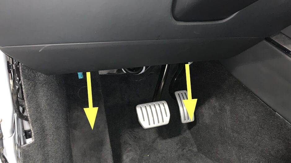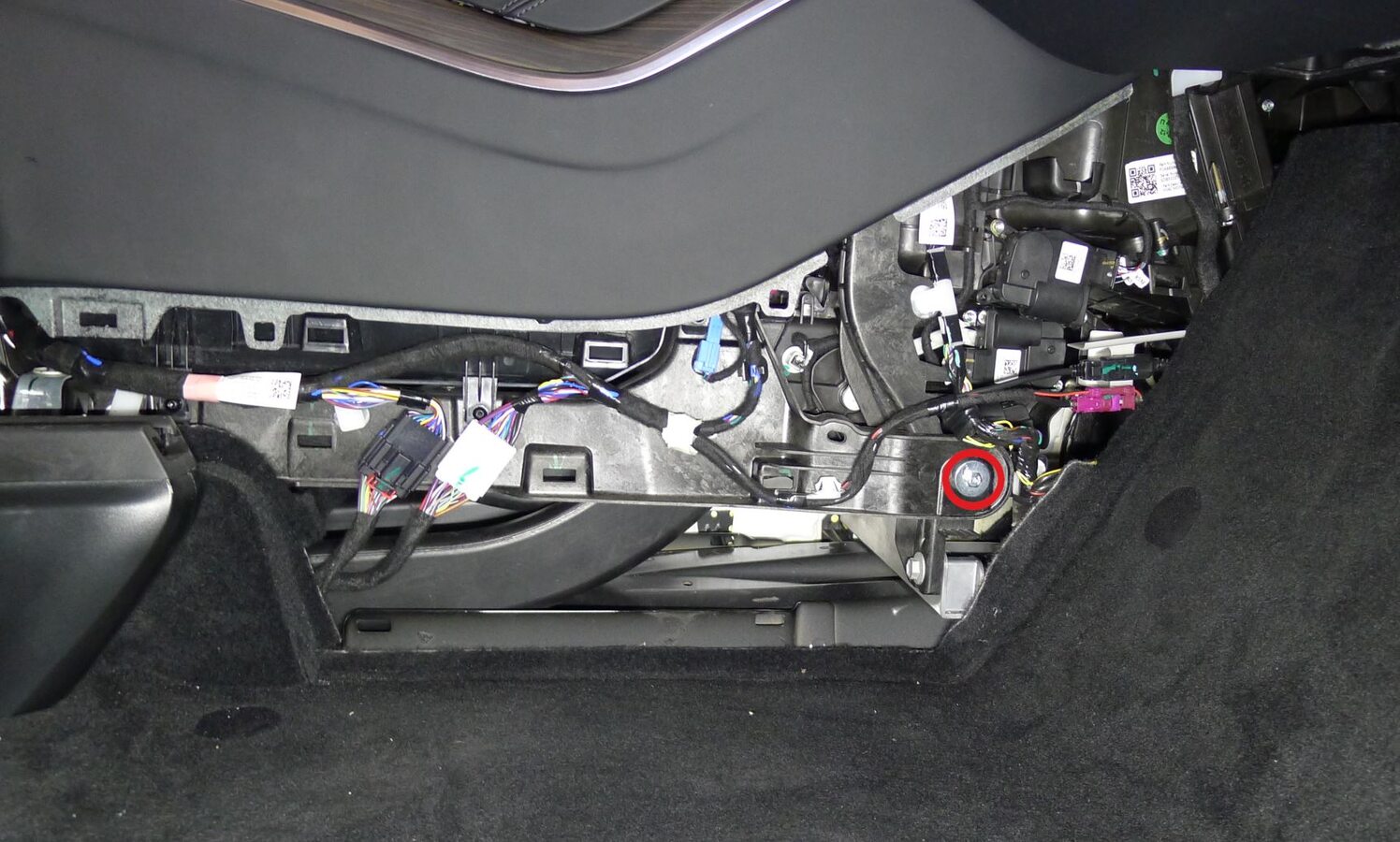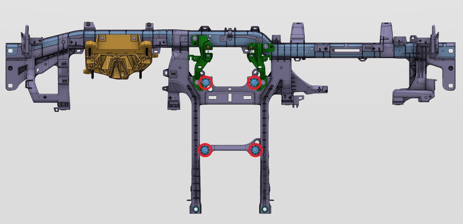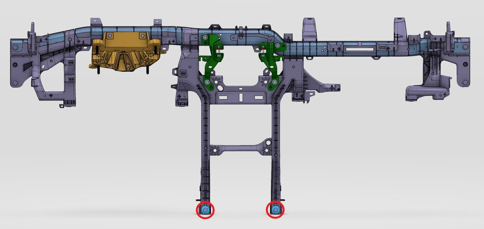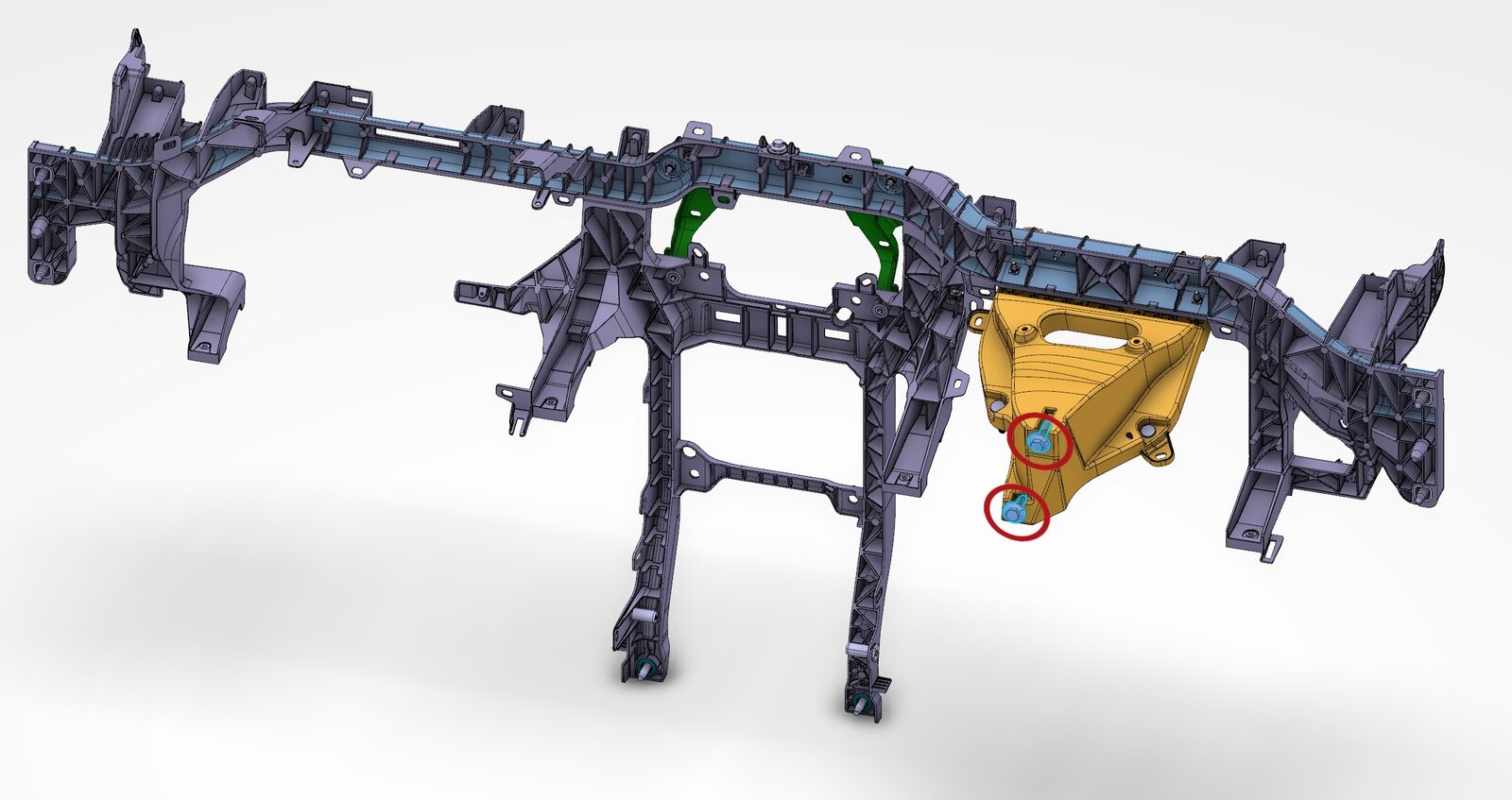 Release upper steering column bracket IP carrier bolts at bulkhead