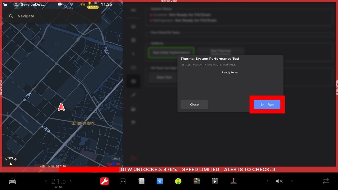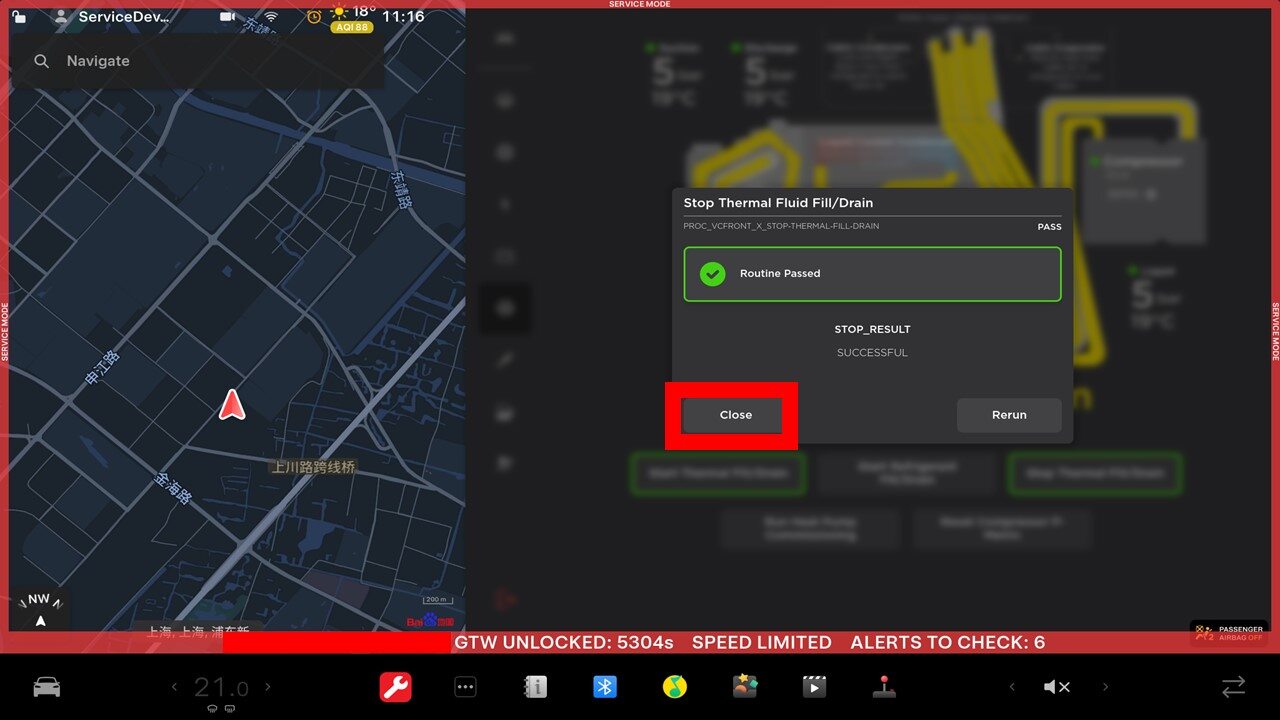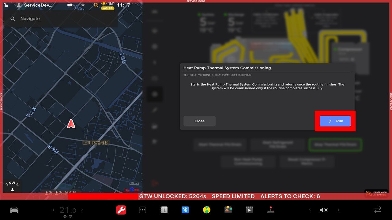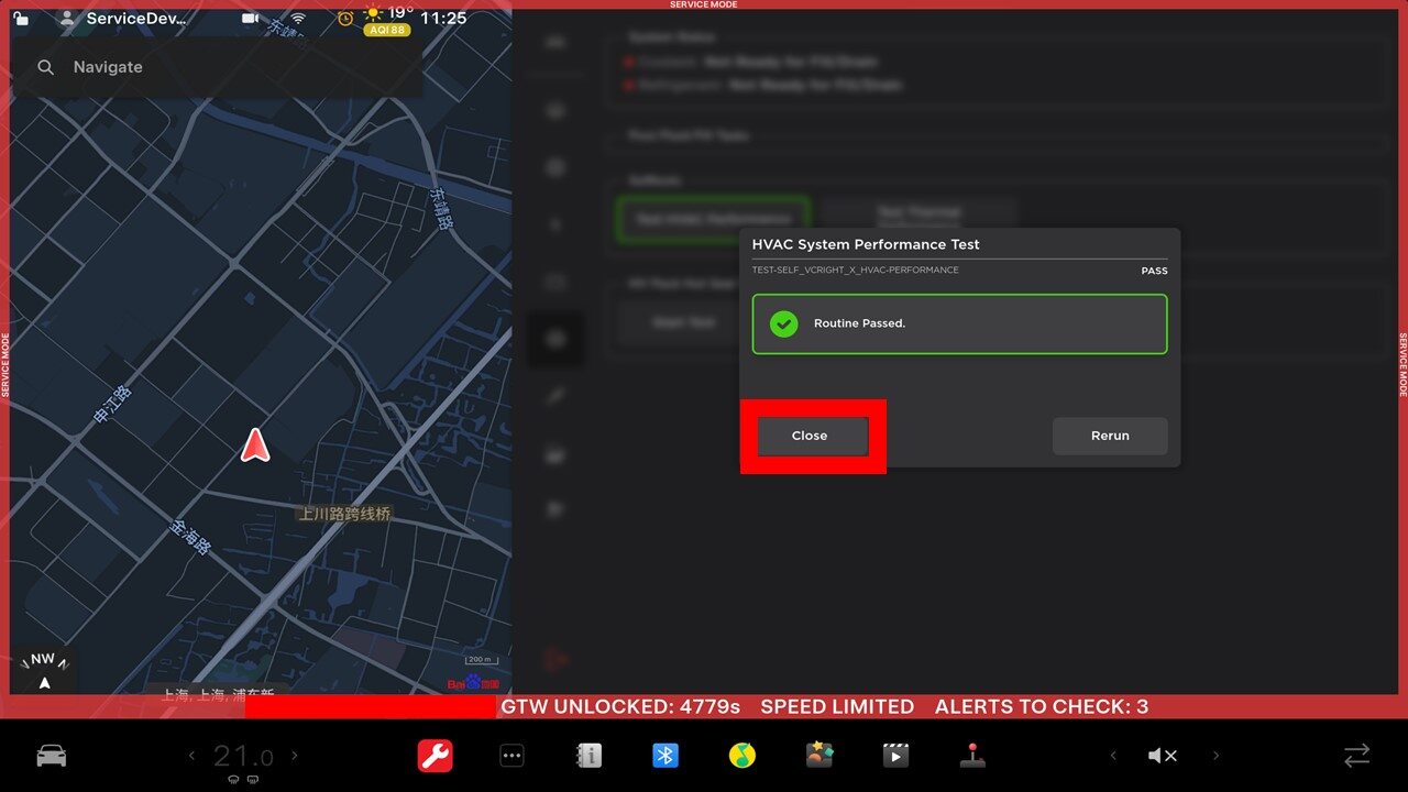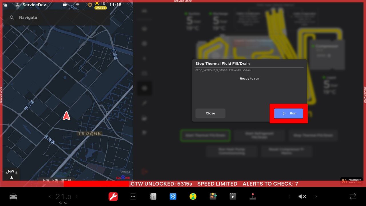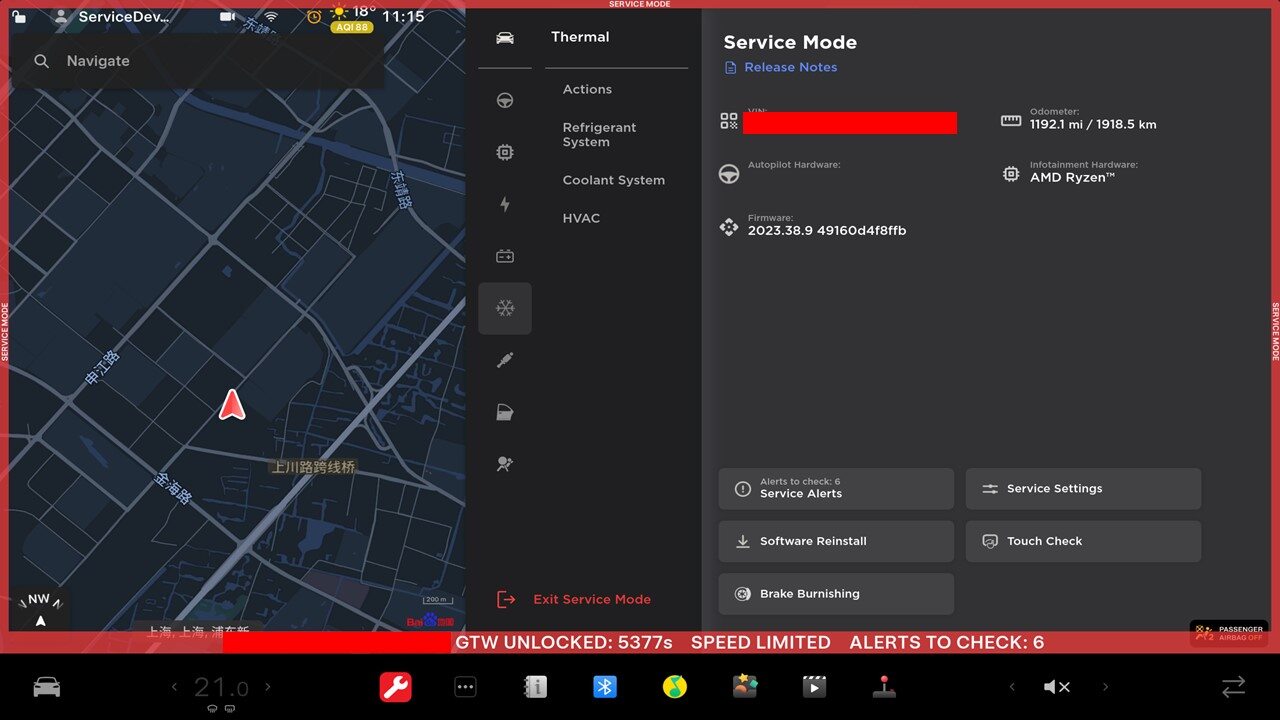 NoteAfter vehicle has been put into "Service Mode", place keycard on center console to turn on drive rails, hold down the brake pedal, while keep pressing right hand signal button simultaneously for at least 10 seconds, "GTW UNLOCKING" should pop up on the UI right next to the VIN during these 10 seconds, once gateway is unlocked "GTW UNLOCKED 5400" will be displayed on the UI next to the VIN, the gateway will remain unlocked for 90 minutes, follow steps on Toolbox article #5582900 for any additional information