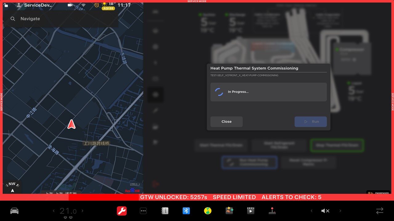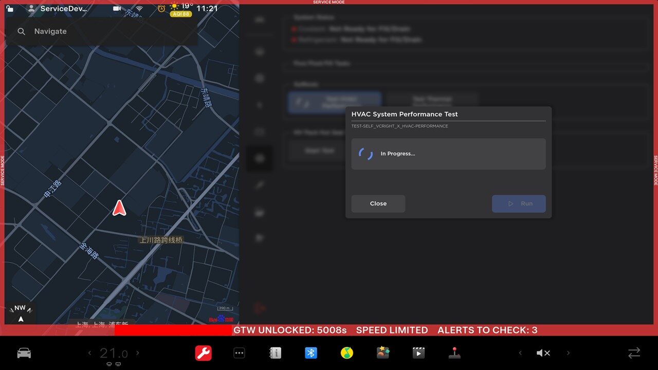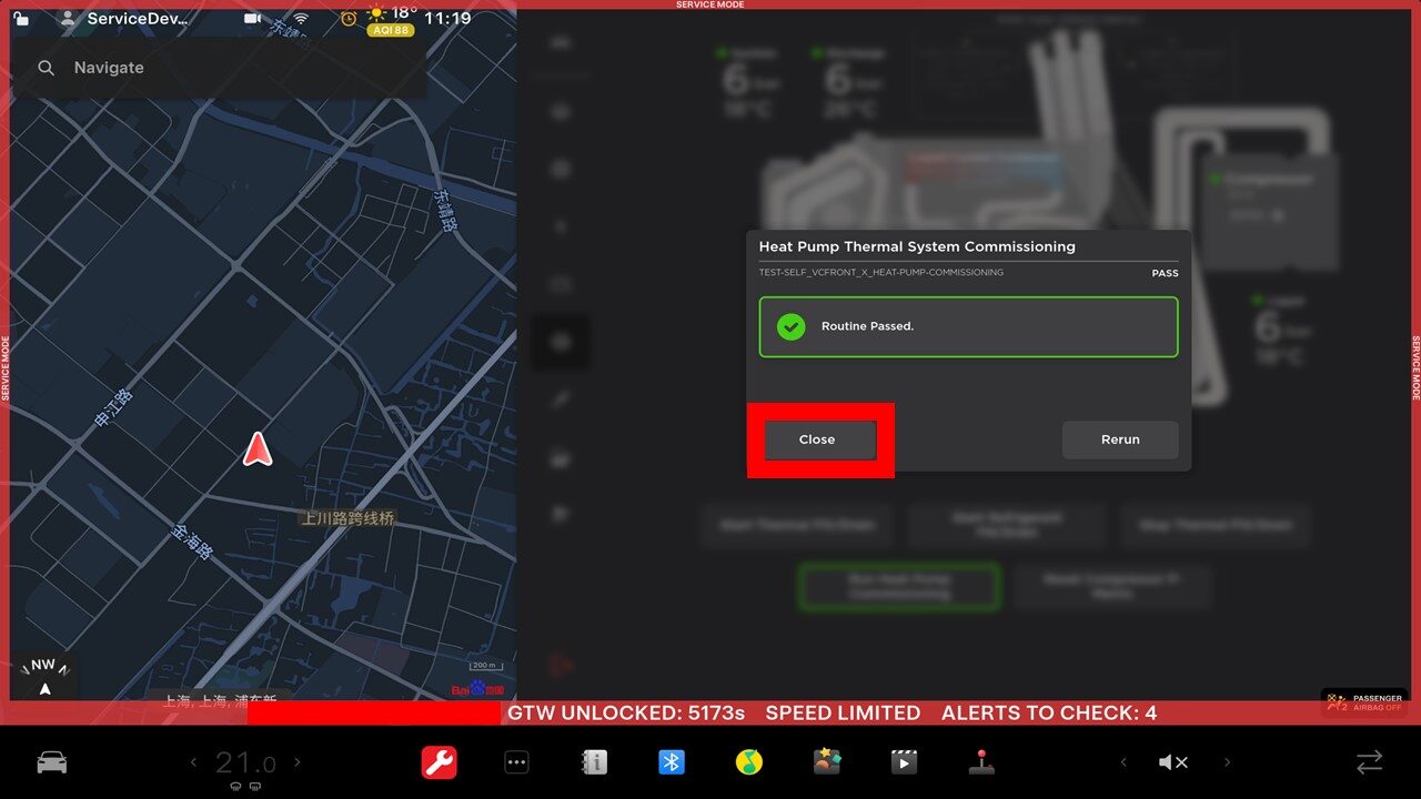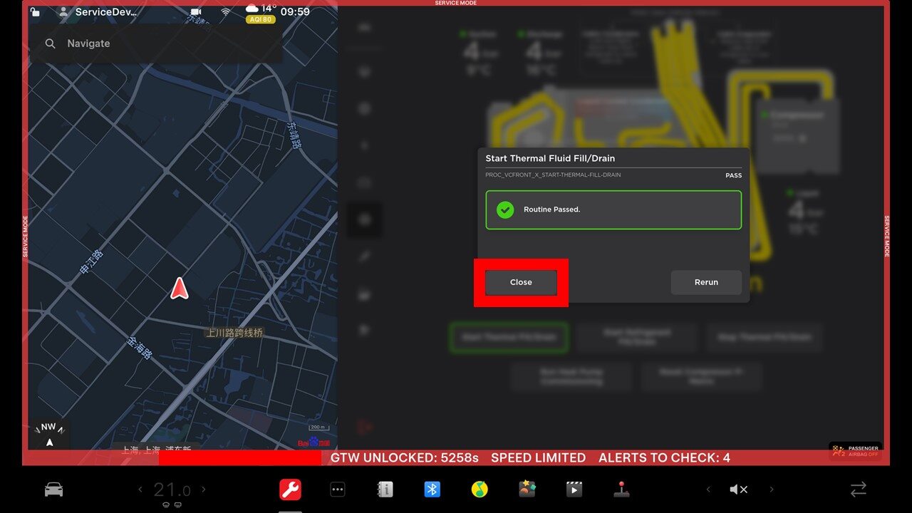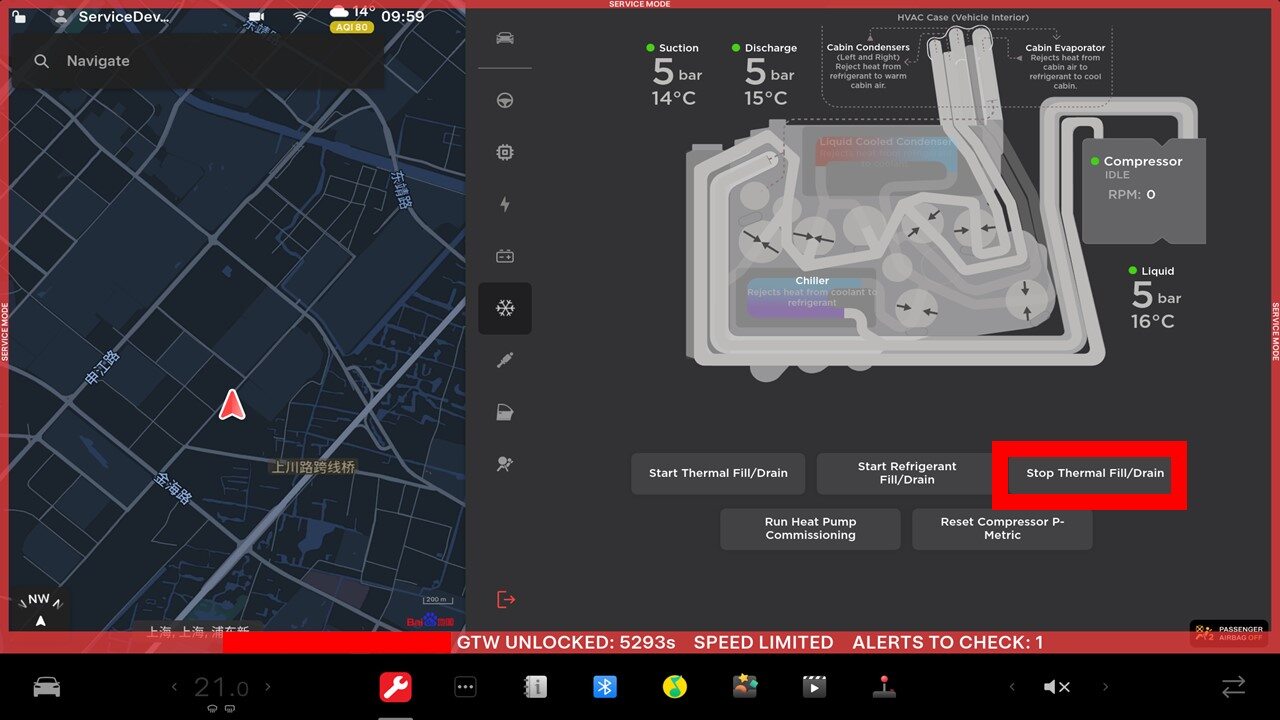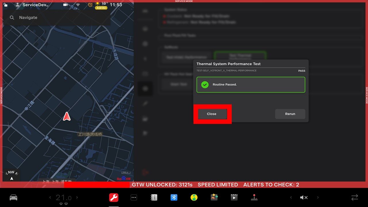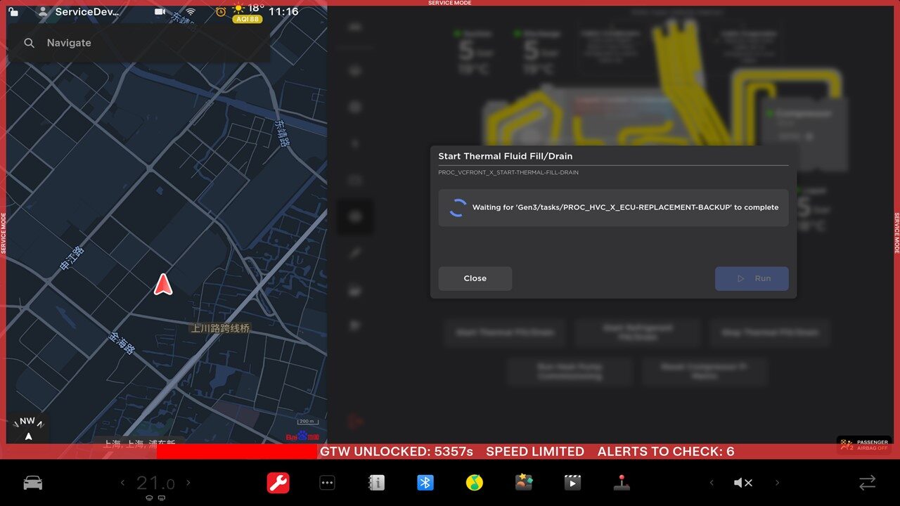 NoteAfter vehicle has been put into "Service Mode", place keycard on center console to turn on drive rails, hold down the brake pedal, while keep pressing right hand signal button simultaneously for at least 10 seconds, "GTW UNLOCKING" should pop up on the UI right next to the VIN during these 10 seconds, once gateway is unlocked "GTW UNLOCKED 5400" will be displayed on the UI next to the VIN, the gateway will remain unlocked for 90 minutes, follow steps on Toolbox article #5582900 for any additional information
