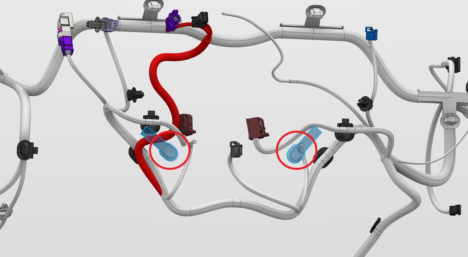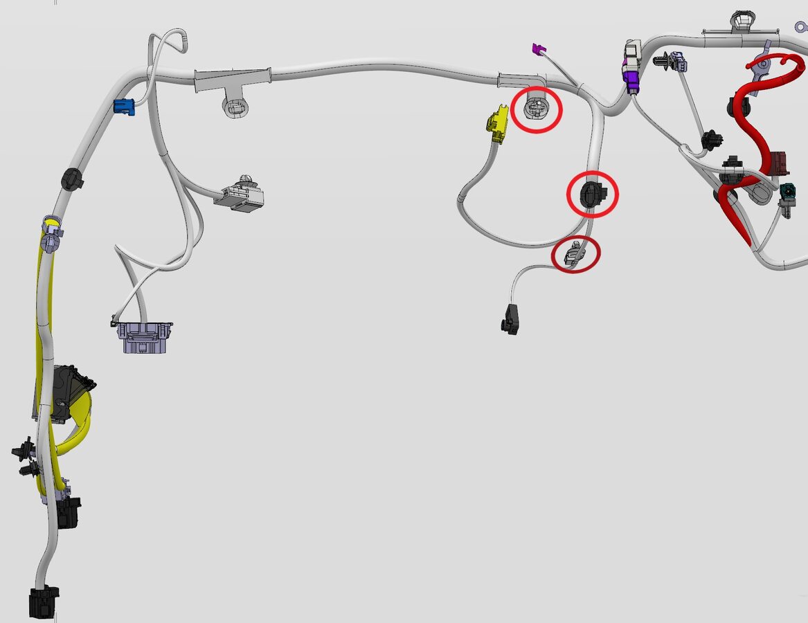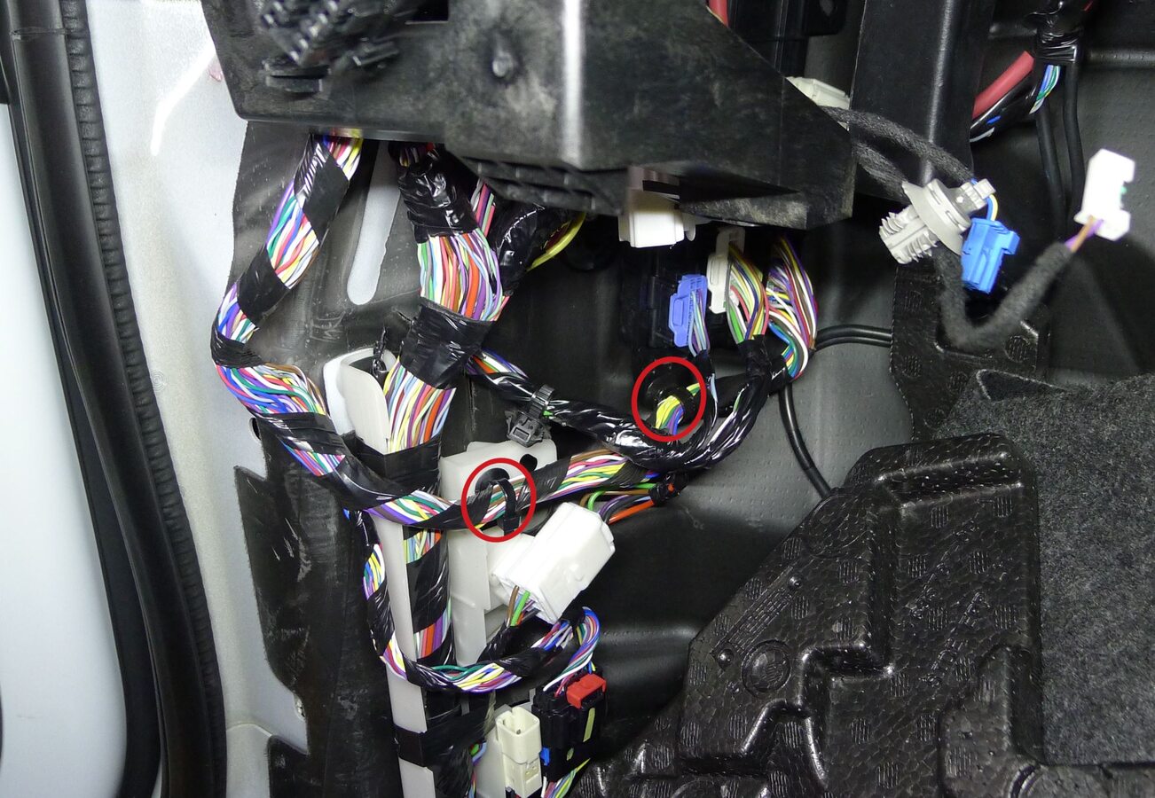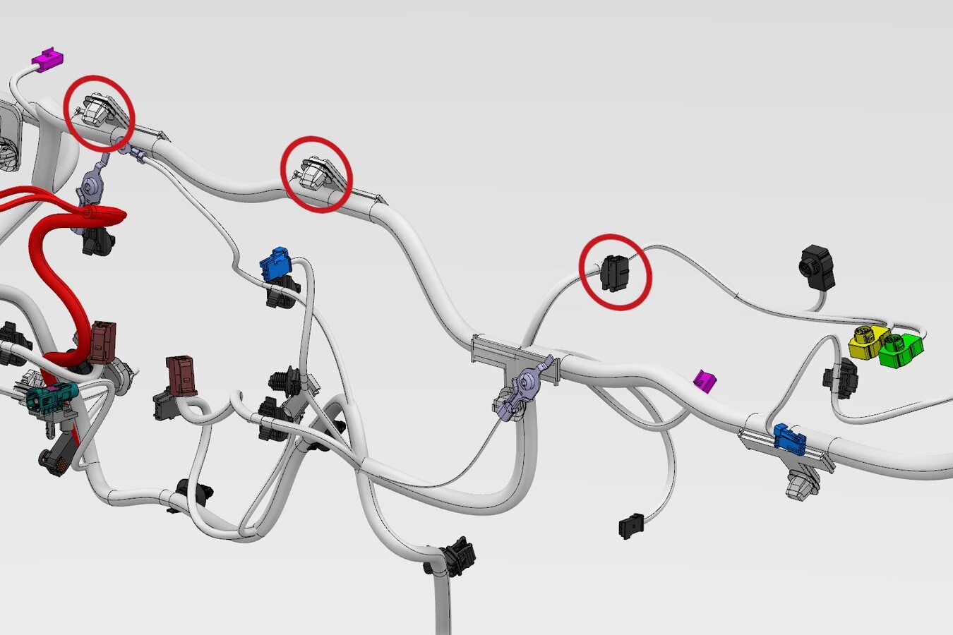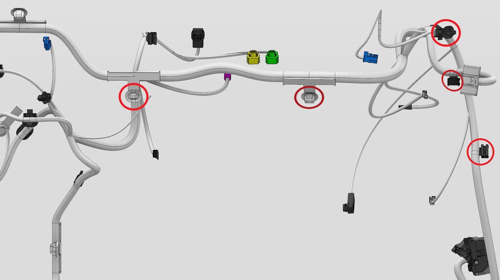 Note1x connector, 2x datums, 6x clips, Secure LH upper A-pillar harness, Align datums into IP sub assembly, Rotate upper A-pillar panel into position engaging clips fully