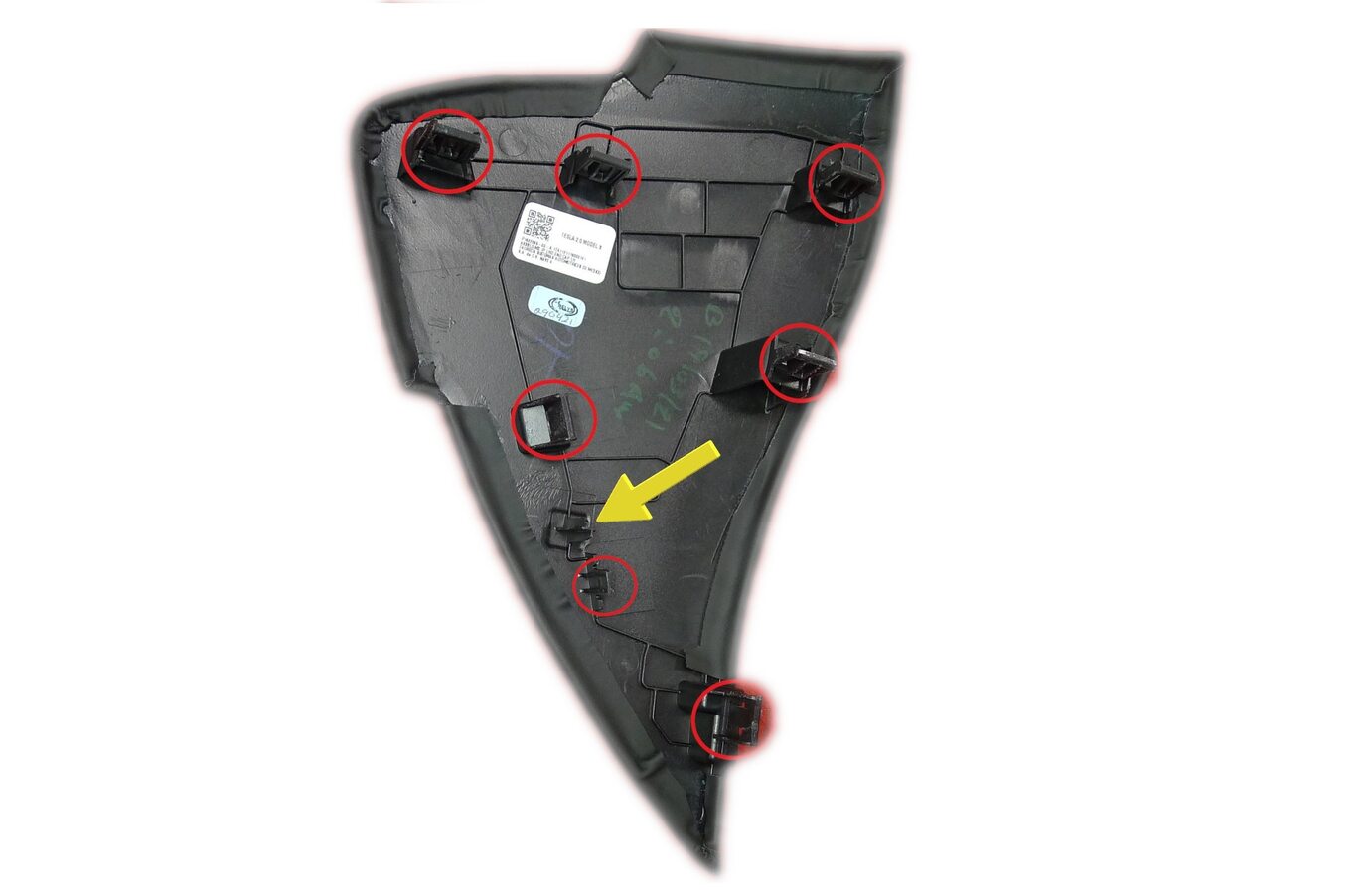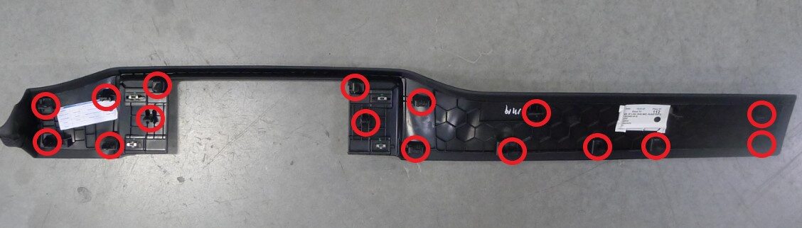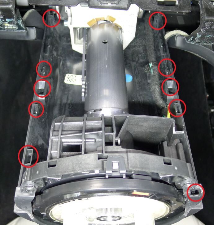 Note6x clips, 7x datums, Engage bottom clips first due to forward facing alignment