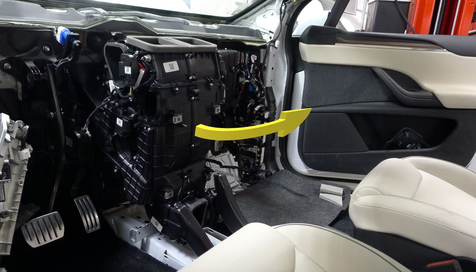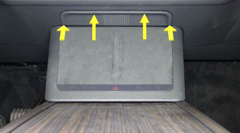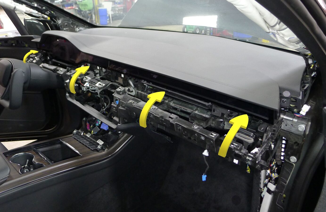NoteLift at rear, rotate front from under IP and out passenger door, Take care not to scratch seats, IP or inner door panel, Recommend assistance if needed