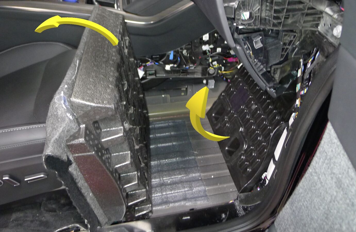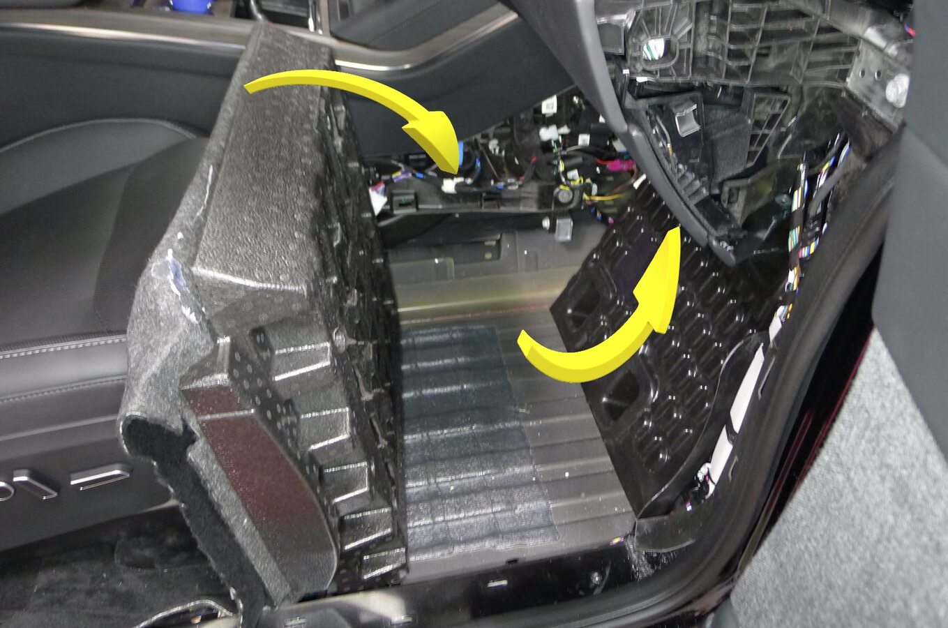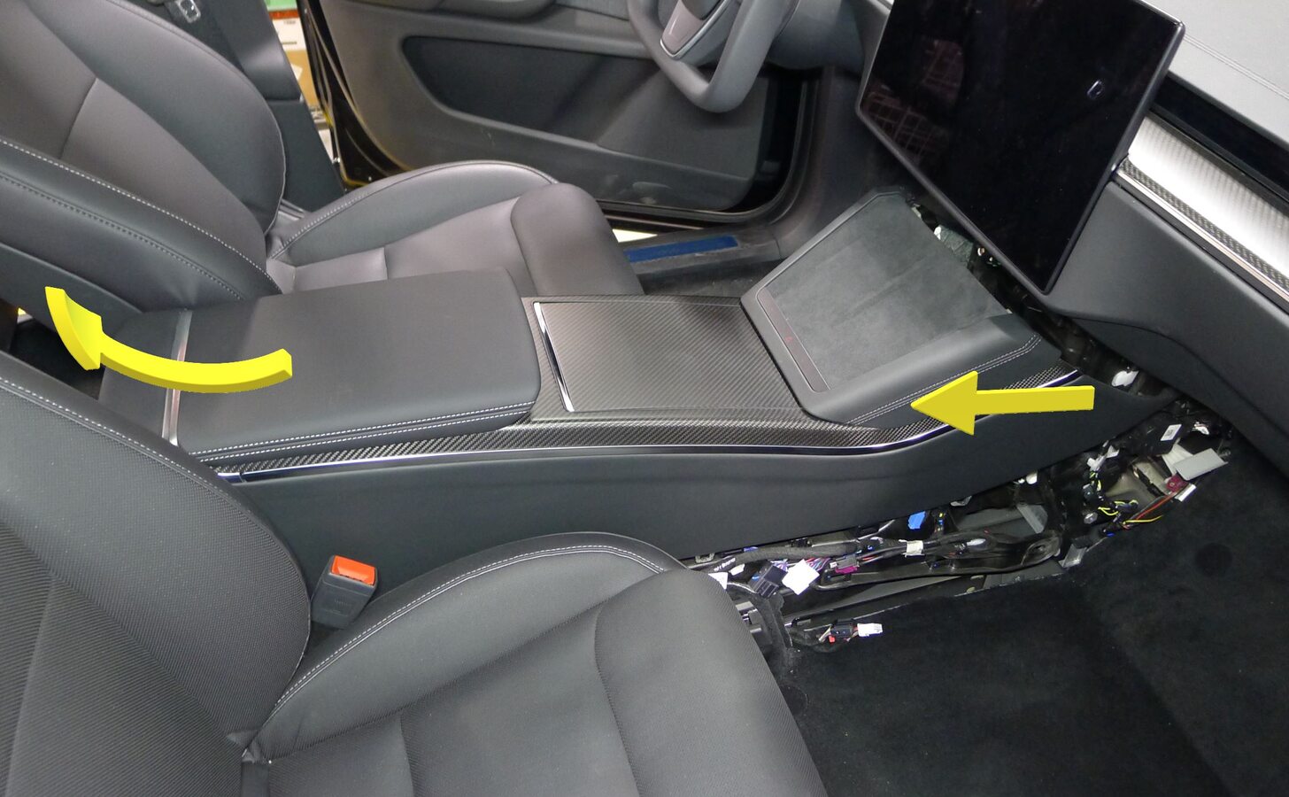 NoteLift at rear, rotate front from under IP and out passenger door, Take care not to scratch seats, IP or inner door panel, Recommend assistance if needed
