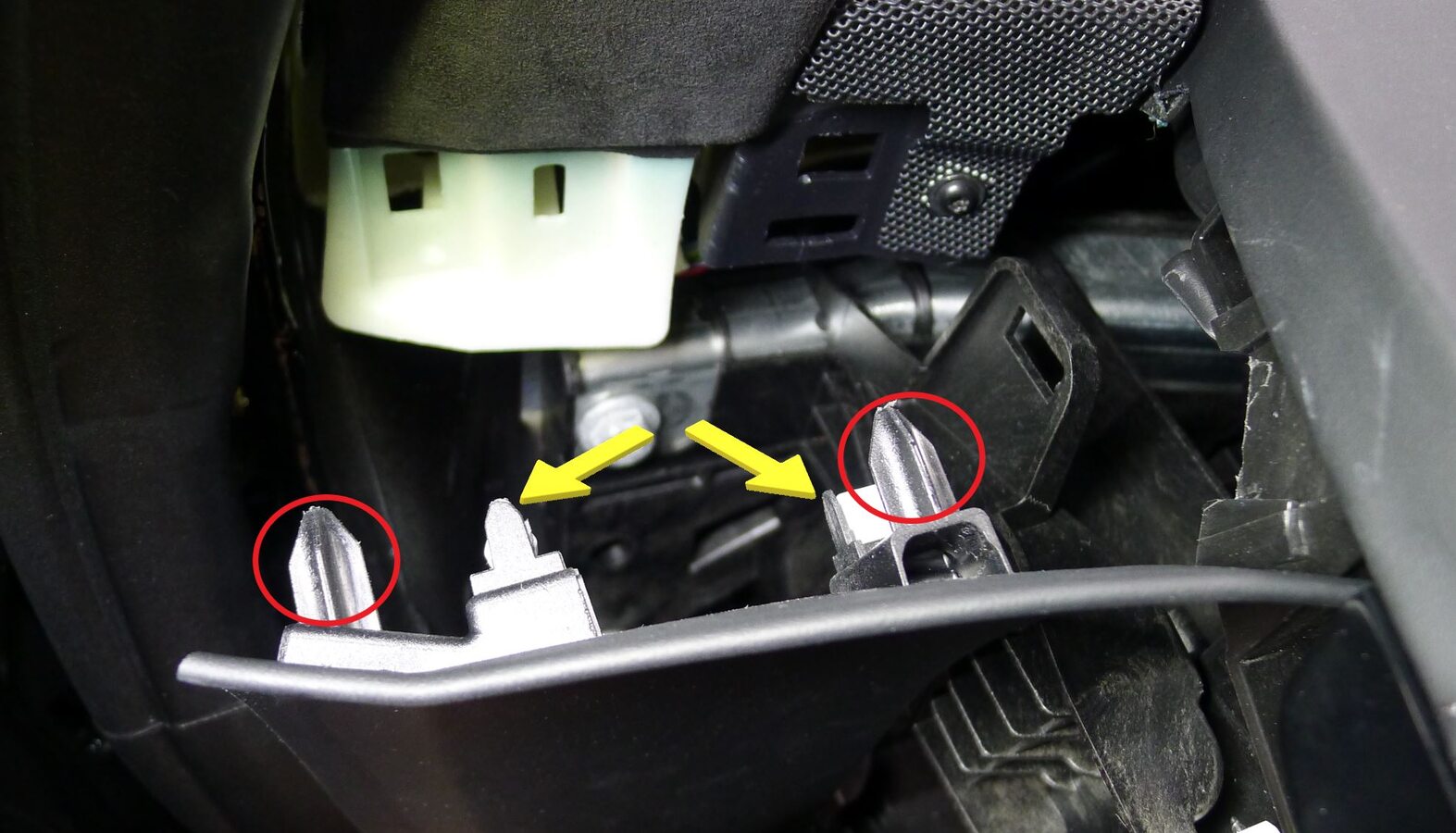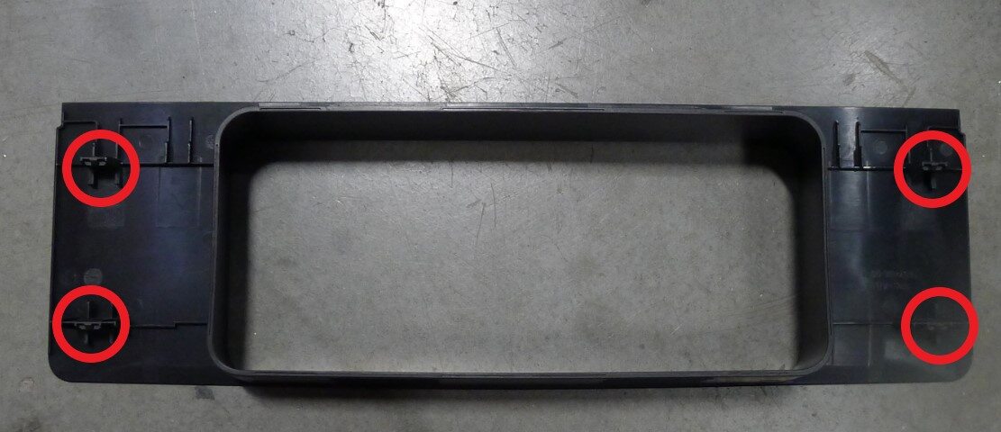 Note6x clips, 5x tabs, Insert tabs and slide bezel towards rear of vehicle, then secure clips