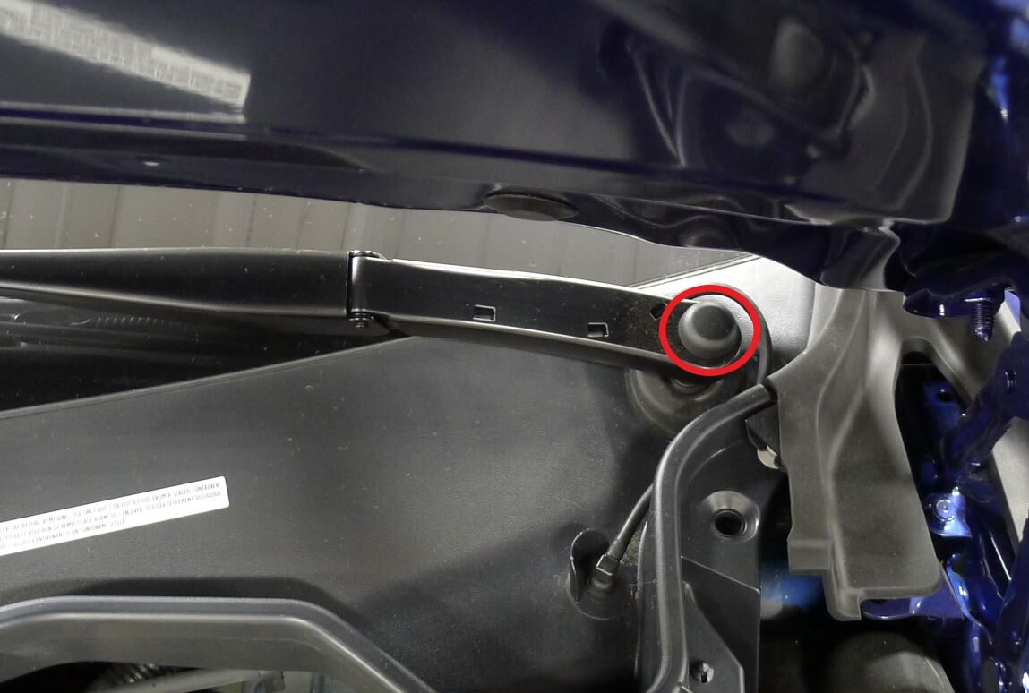 Note1x nut, 15mm, 32 Nm, Do not flex wiper arm to remove, Lower hood slightly to fit wiper arm removal tool