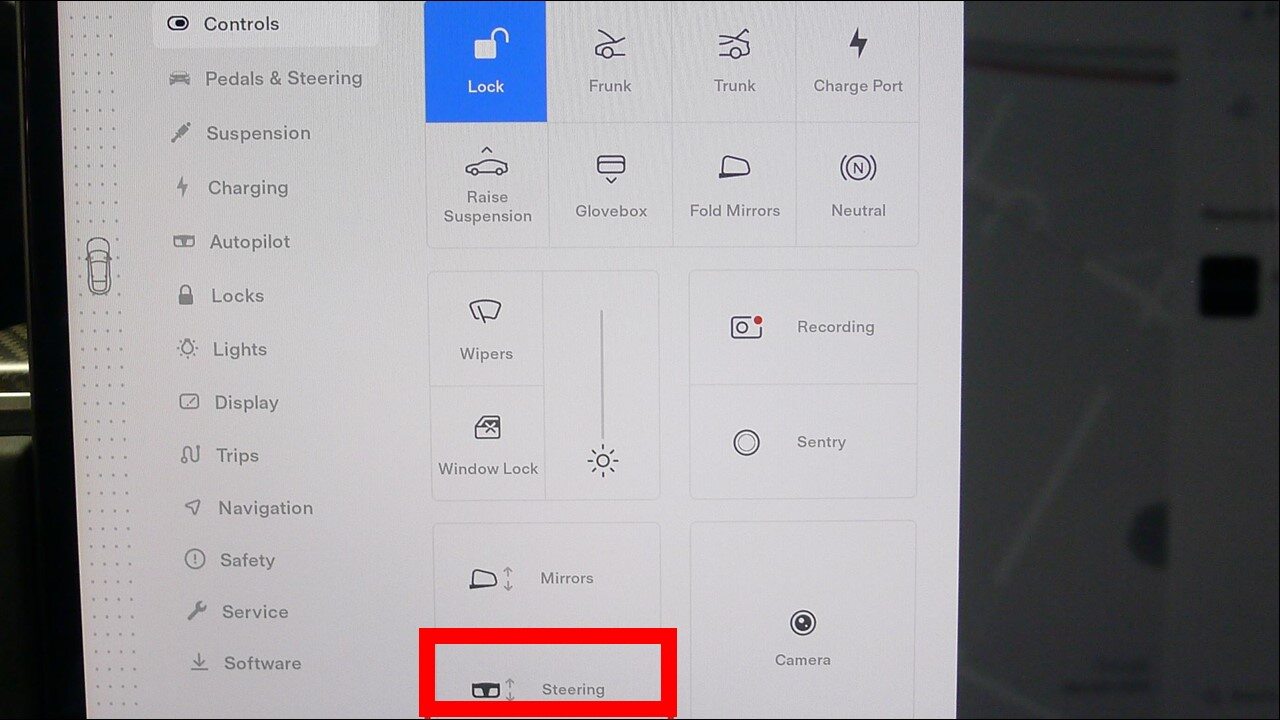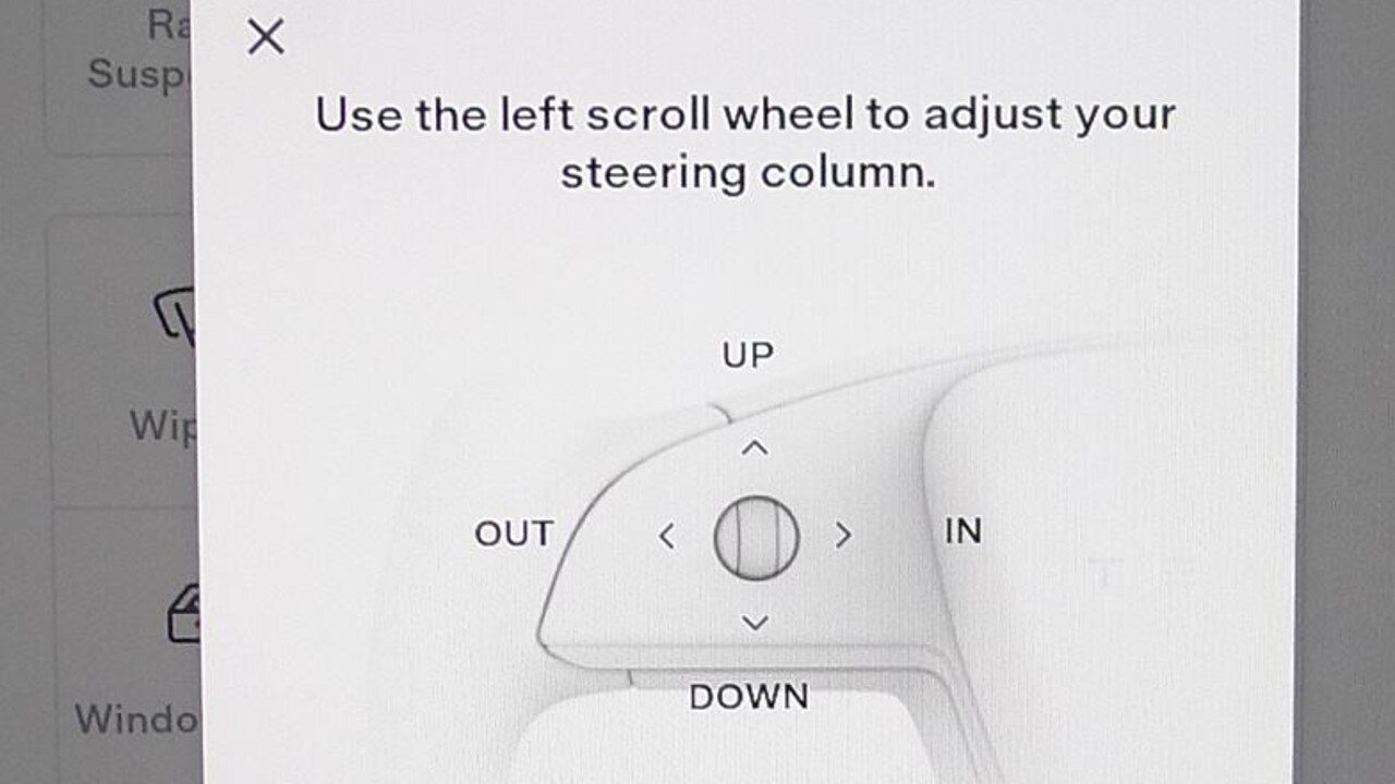 NoteVia UI > Controls > Steering , Use left steering wheel scroll wheel to adjust steering column