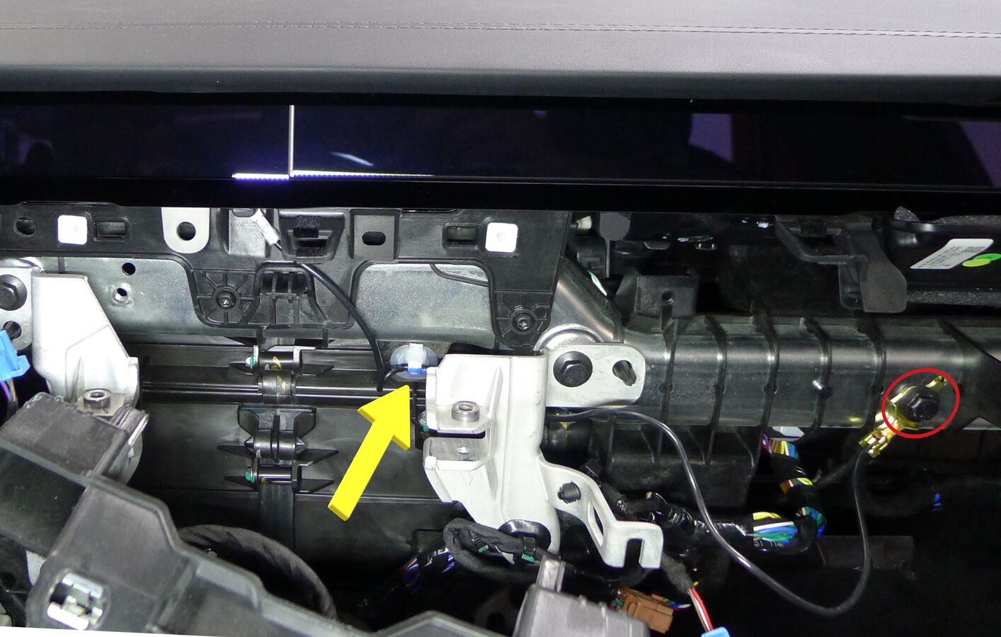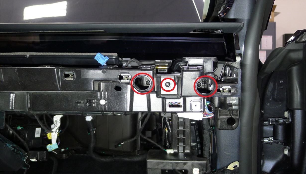 Note2x bolts, 10mm, 11.5 Nm, Slide center display into IP carrier, Start RH bolt first