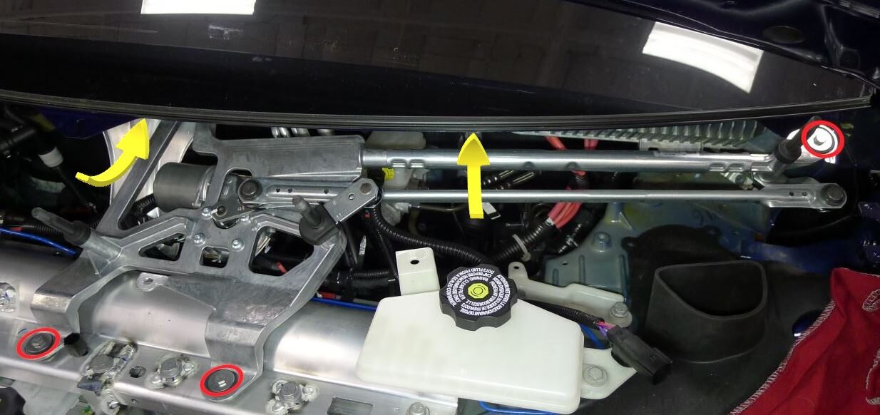 Note4x push clips, Pull cowl up out of lower windshield channel