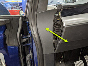Note1x cover, 1x clip, 1x datum, 1x screw, 8 mm, 1 Nm, Align datums and footwell vent before installing screw