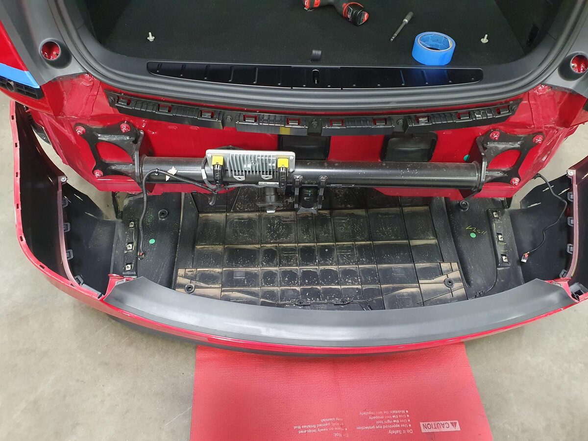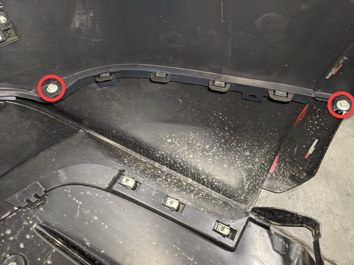 Note1x bolts, 10mm, 4 Nm, Lift up on the outer section where upper trough and lower trough meet, Be cautious not to remove double sided tape, This will allow access to the bolt without fully removing trim