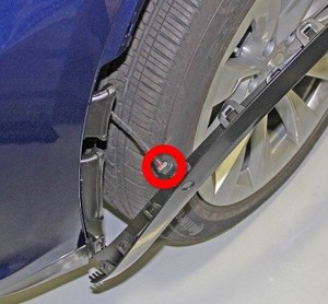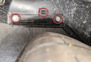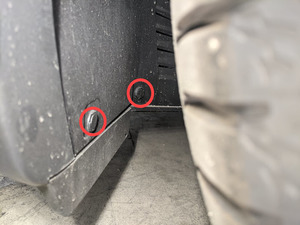 HW4 vehicles only: Remove the clips (x3) and bolt that attach the LH front wheel