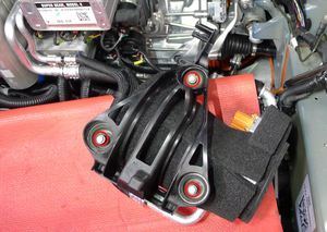 bolts (x2) that attach the A/C compressor bracket to the multi-system beam.