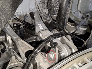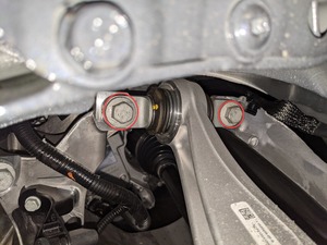 Bolts (x2) that attach the rear upper aft link to the subframe |