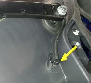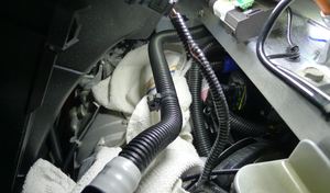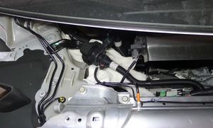 Secure cowl screen washer supply hose located above LH shock tower cover