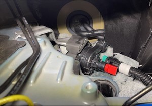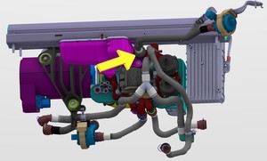 Install clip securing the supermanifold to battery pump supply hose onto LV battery