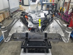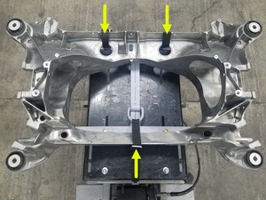 a new rear subframe onto the subframe lift and then attach one strap at the front, and