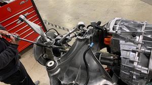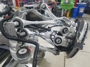 sling tool and carefully lift the rear drive unit out of the rear subframe, routing the