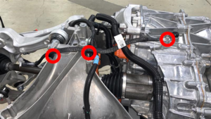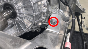 fasten the clip that attaches the electrical harness to the rear drive unit