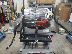 sling tool and carefully set the rear drive unit into the rear subframe, routing the HV