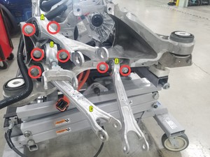 - Repeat step 23 through step 34 on the RH side of the rear subframe.