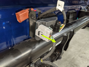 Connect the LH body harness connector to the trailer hitch assembly jumper