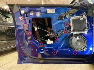 - Install the LH front window motor/regulator assembly. See Window Motor/Regulator Assembly - Front - LH (Remove and Replace).