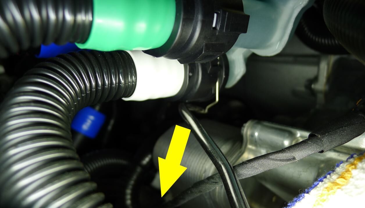 Secure cowl screen washer supply hose located above LH shock tower cover