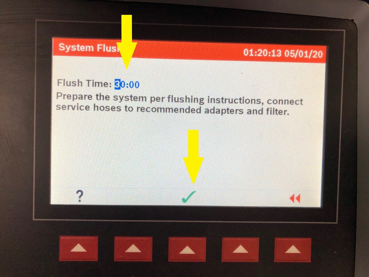NoteTouch time only, Connect couplers to machine, Open couplers by turning clockwise, Using Main Menu > Next > Menu > Flush hoses > Verify hose connection, Machine will chime once process is complete