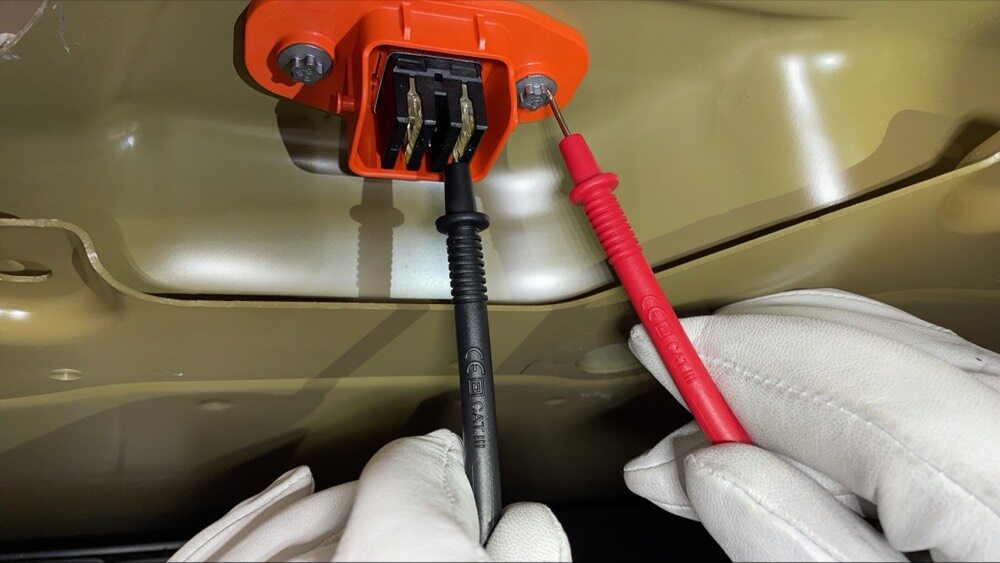 NoteSet multimeter to DC voltage, Confirm multimeter is properly measuring voltage by testing LV battery, Touch lightly and do not damage terminals