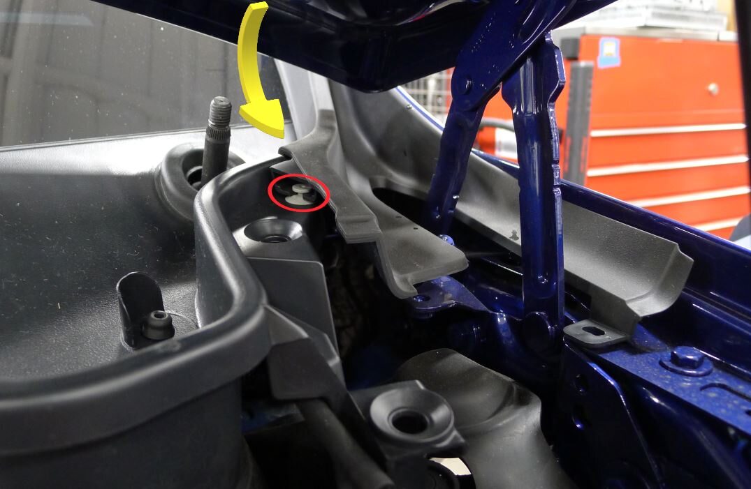 Note4x push clips, Pull cowl up out of lower windshield channel