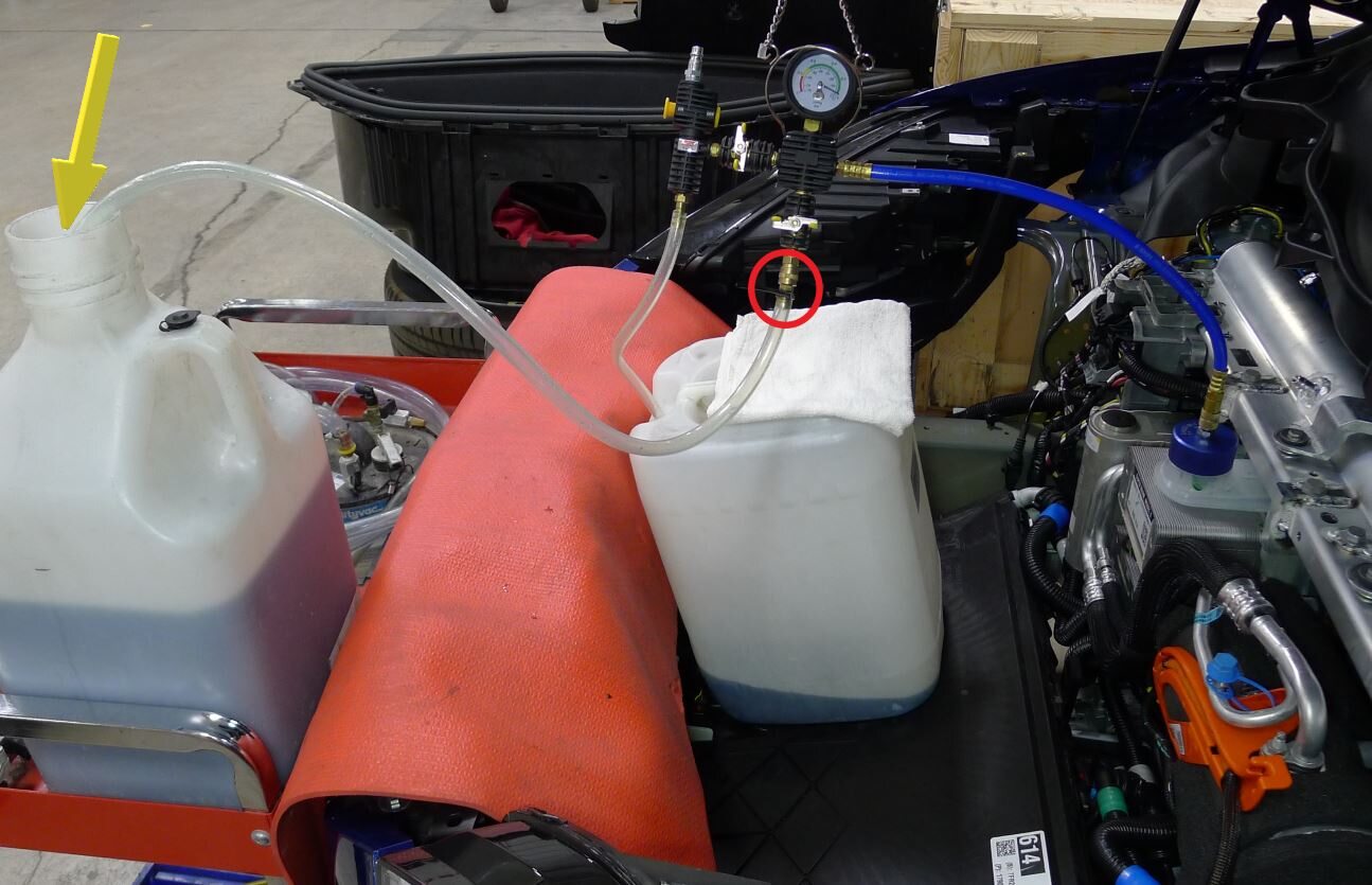 NoteDo not place container with 15L of coolant on top of CFM fan shroud, Position cart as close as possible to front of vehicle