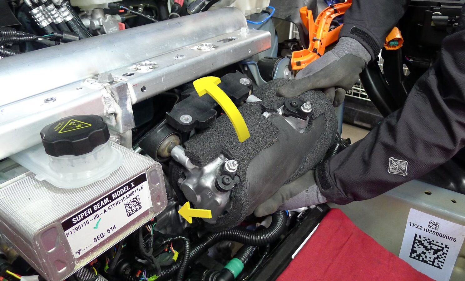 Note3x bolts, 10mm, 9 Nm, 1x connector, Secure connector before install, Rotate module rearward and up into place
