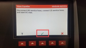 NoteRemove low side coupler from vehicle, Turn vehicle off, Verify Hose Equalize settings, Machine will chime once process is complete