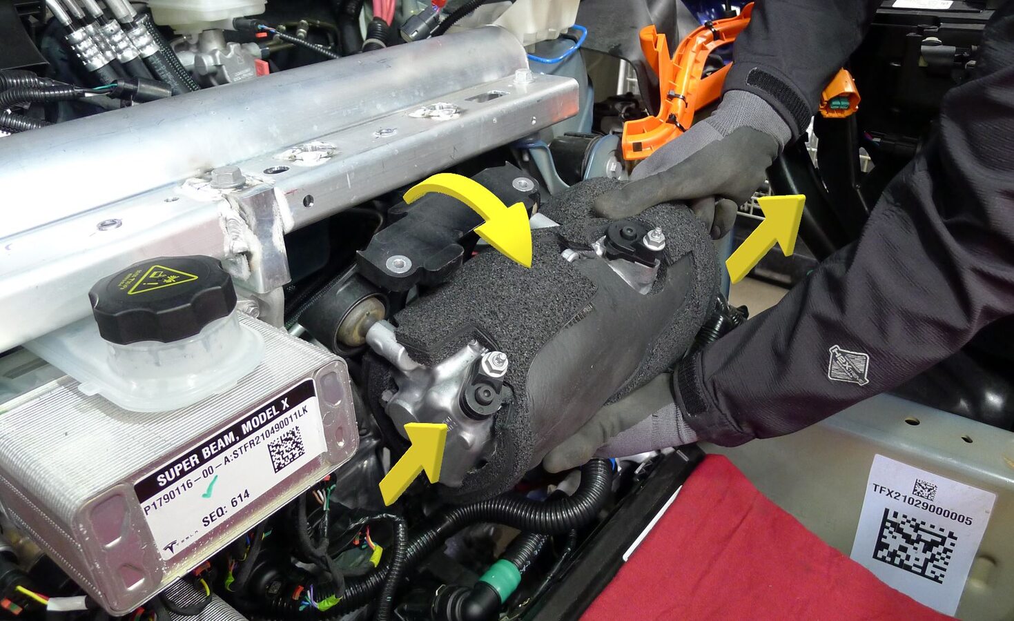 NoteCheck gloves for damage prior to use, Refer to service document TN-15-92-003, for information on inspecting HV gloves. https://service.teslamotors.com/documents?model=&keys=TN-15-92-003&vehicle_system=&sort_by=field_date_submitted&sort_order=DESC